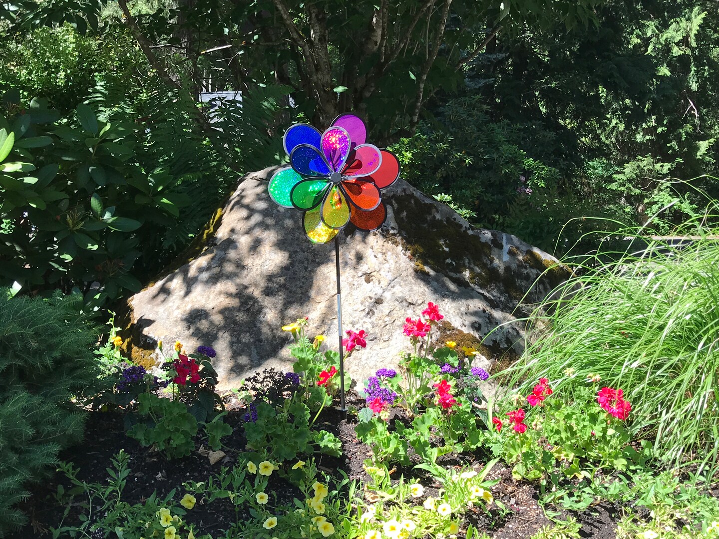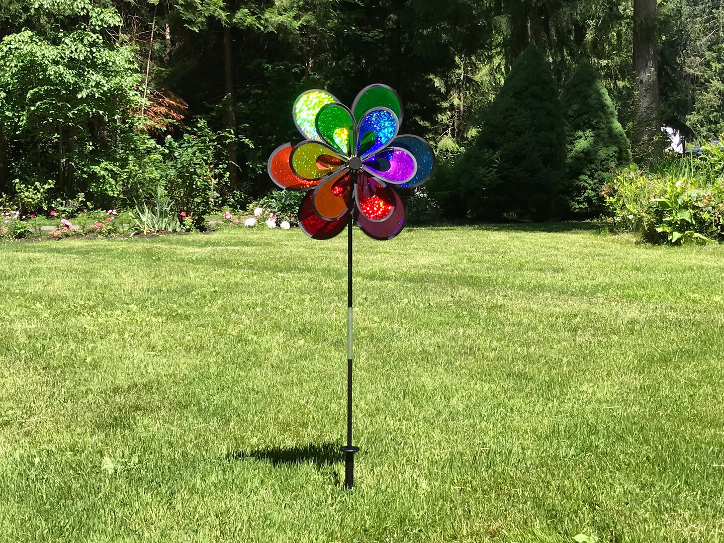 In the Breeze 2691 - 13 Inch Rainbow Sparkle Double Windee Wheelz Spinner - Colorful Wind Spinner for your Yard and Garden