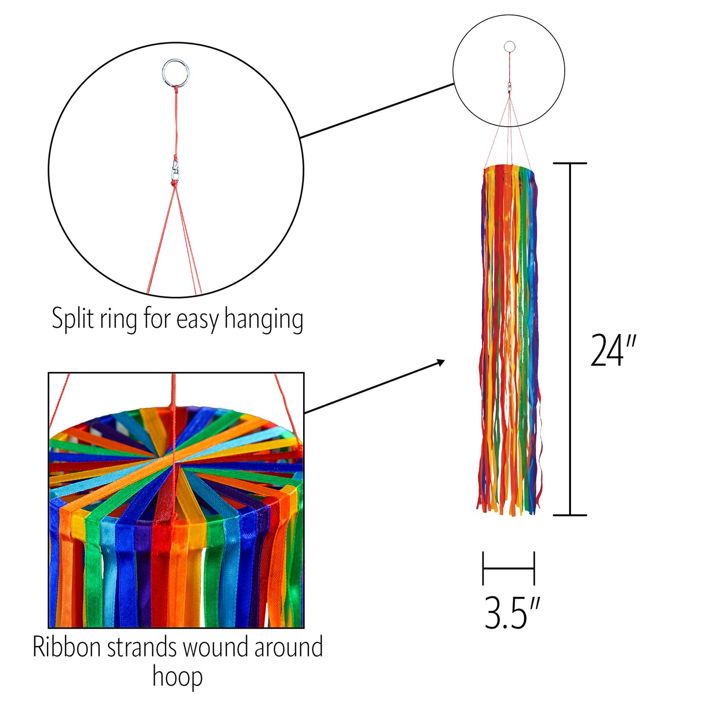 In the Breeze 5186 — 24-Inch Rainbow Ribbon Windsock