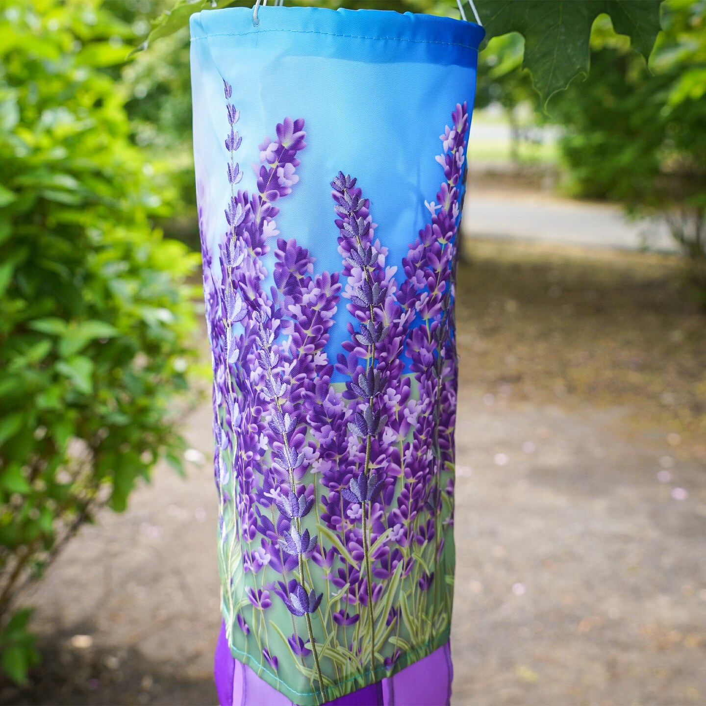 In the Breeze 5211 — Lavender 40-inch Inspiration Windsock — Colorful Hanging Garden Décor with Embroidered Details