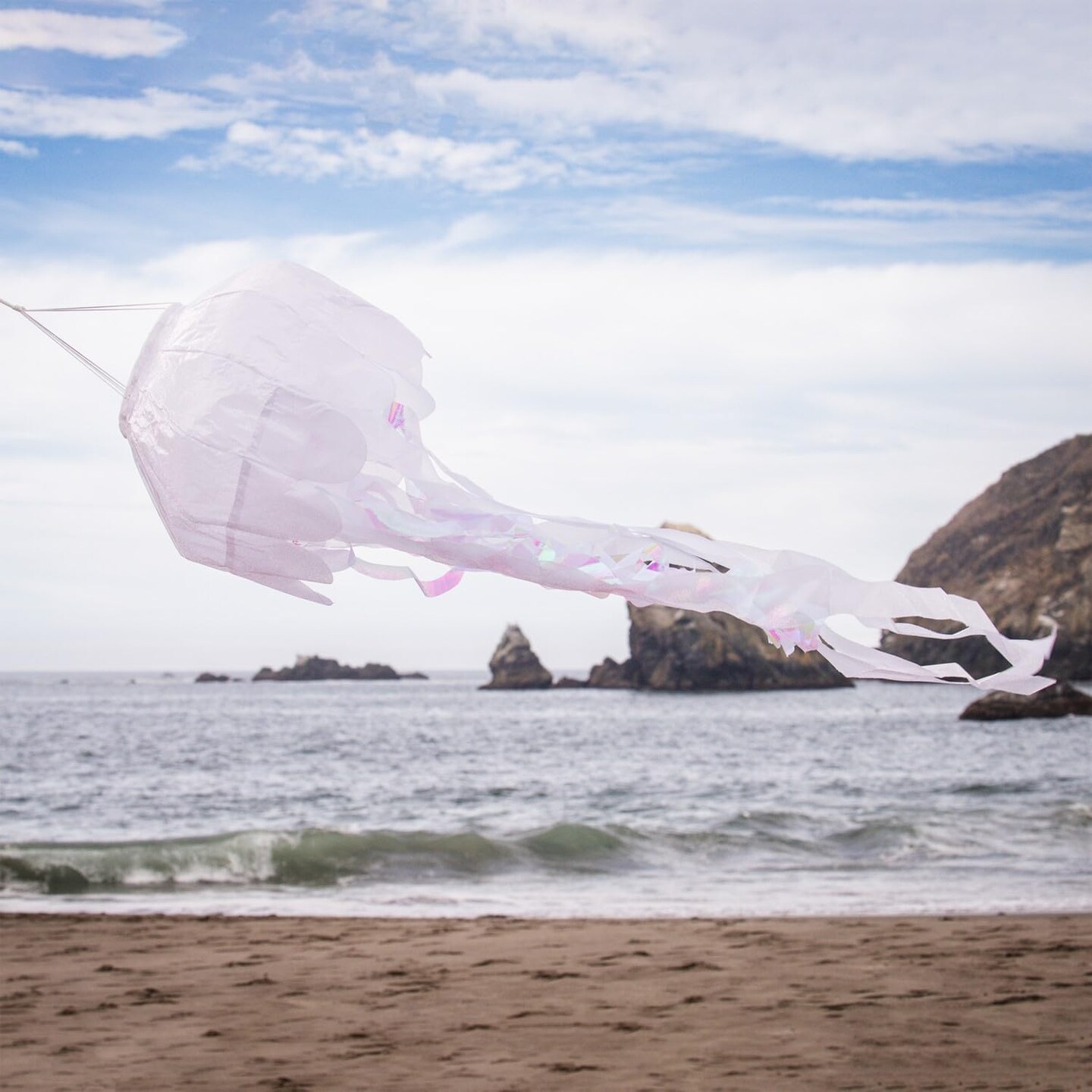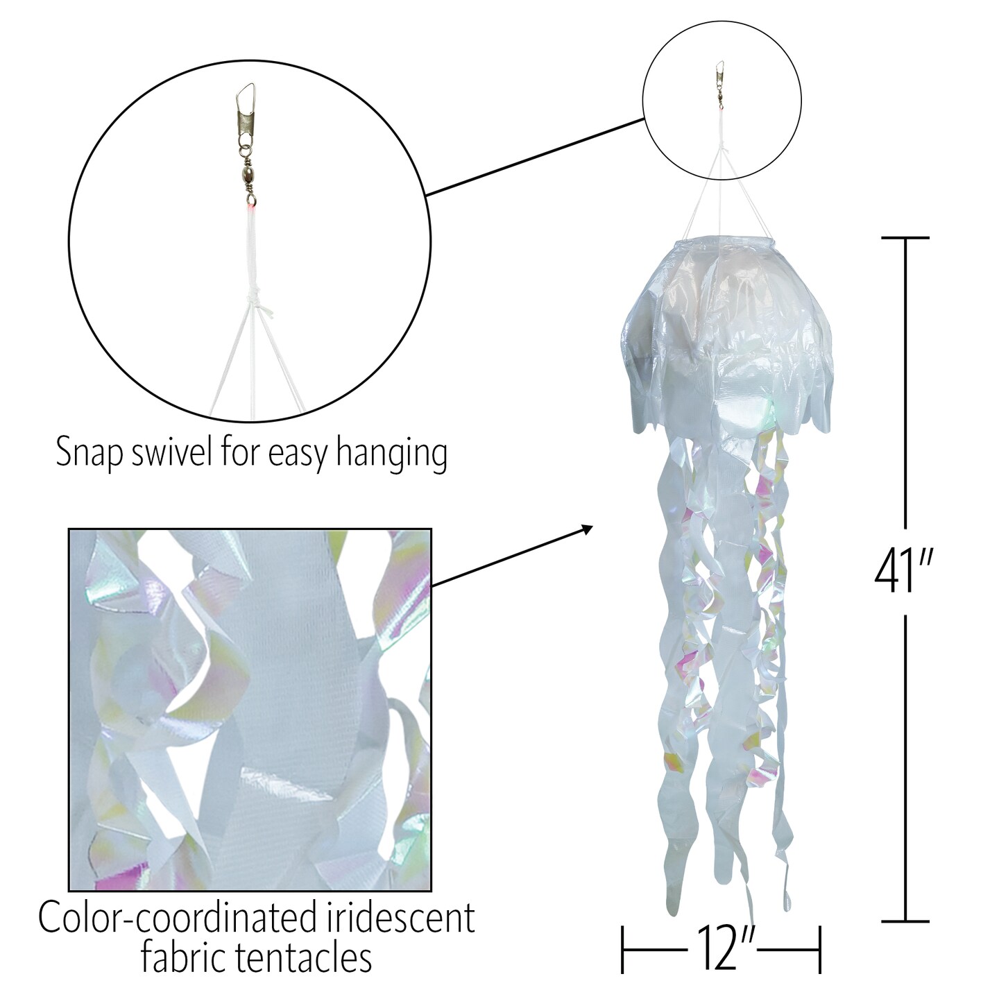 In the Breeze 5256 — 40-inch White Iridescent Jellyfish 3D Windsock — Simmering Windsock with Inflatable Head and Free-Flowing Tentacles