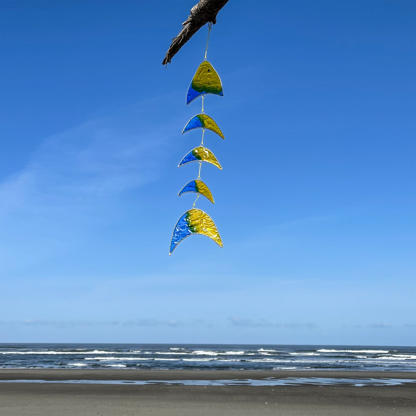 In the Breeze 7022 — Yellow & Blue Resin Fish Hanging Mobile - Colorful Suncatcher