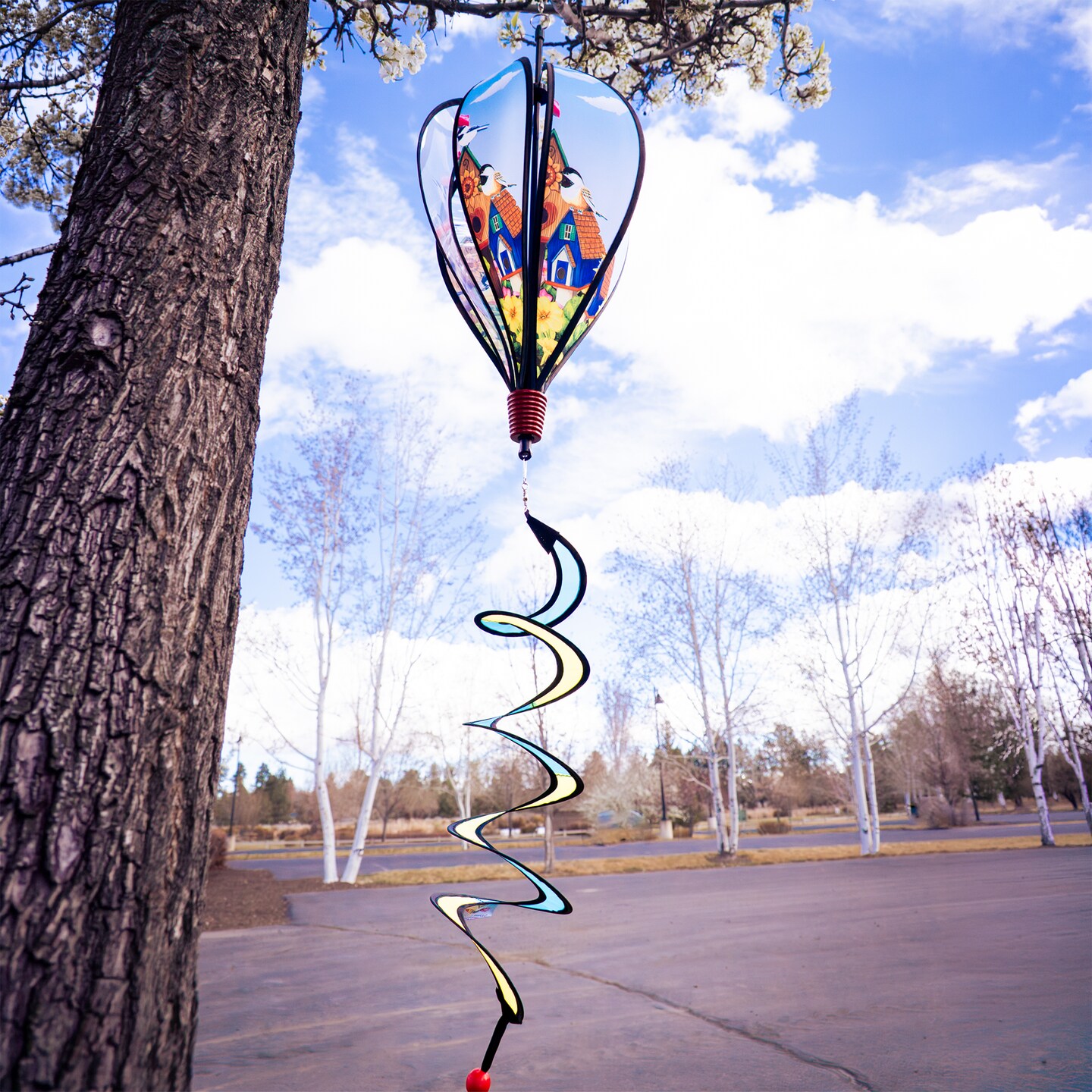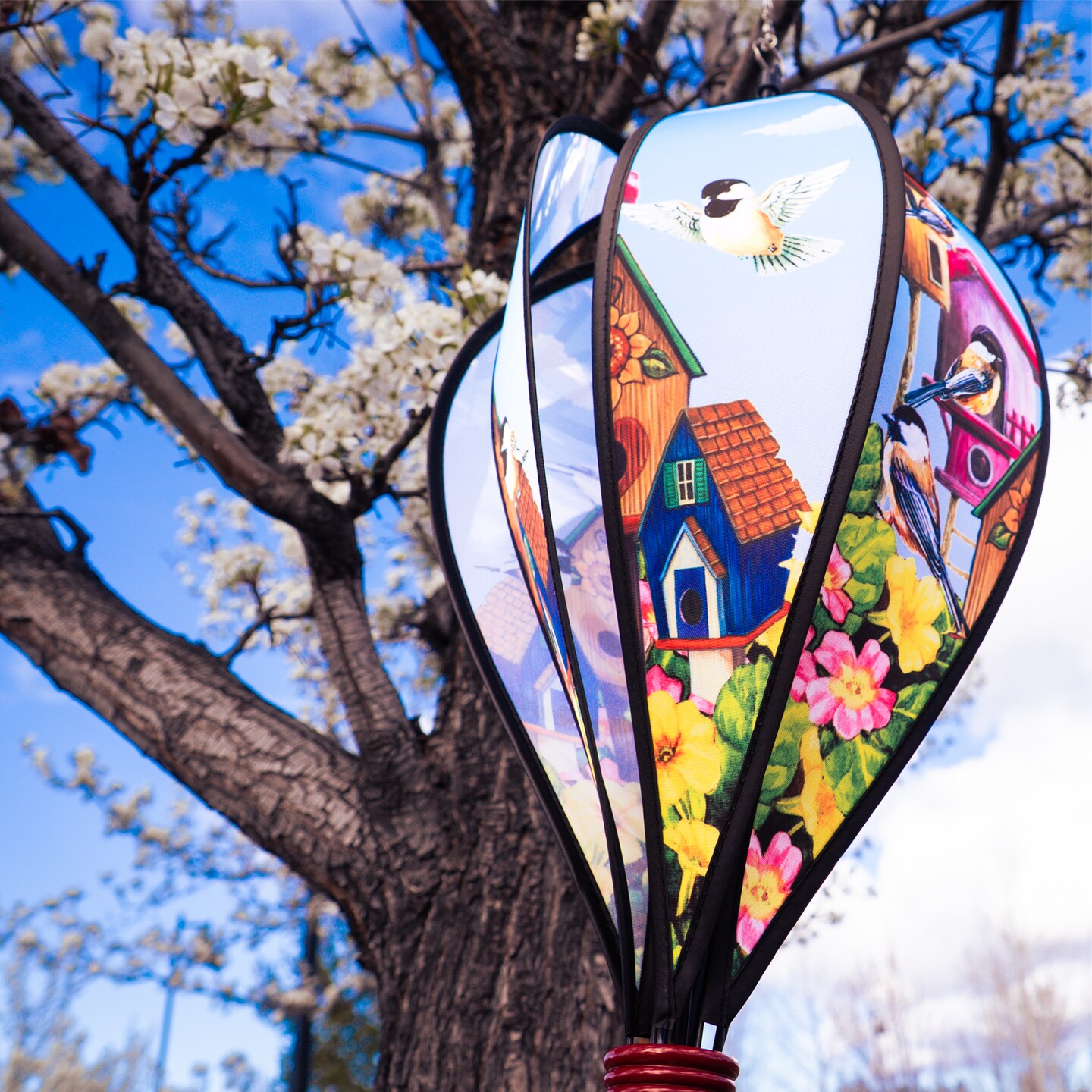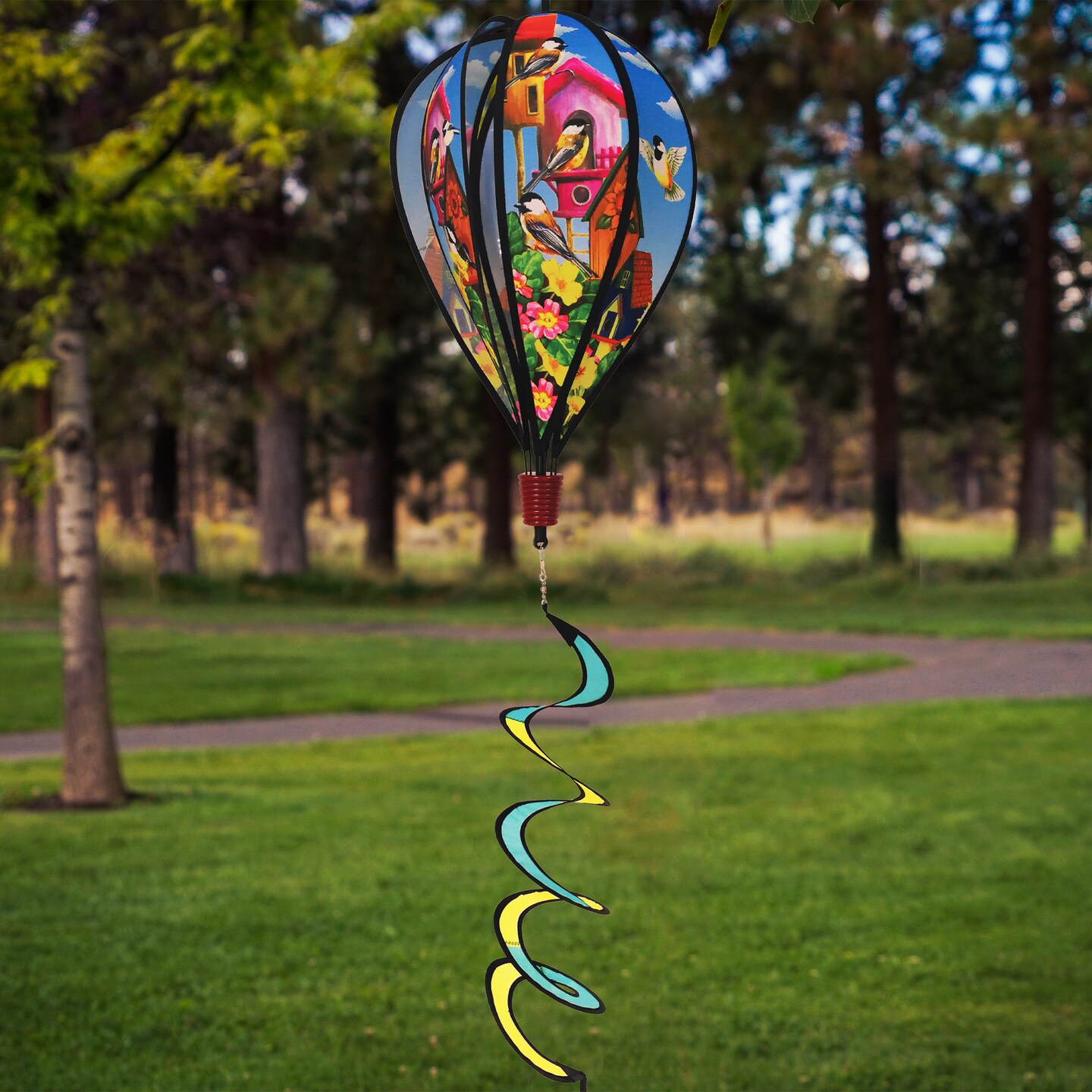 In the Breeze Chickadee Birdhouse 6-Panel Kinetic Hot Air Balloon Wind Spinner