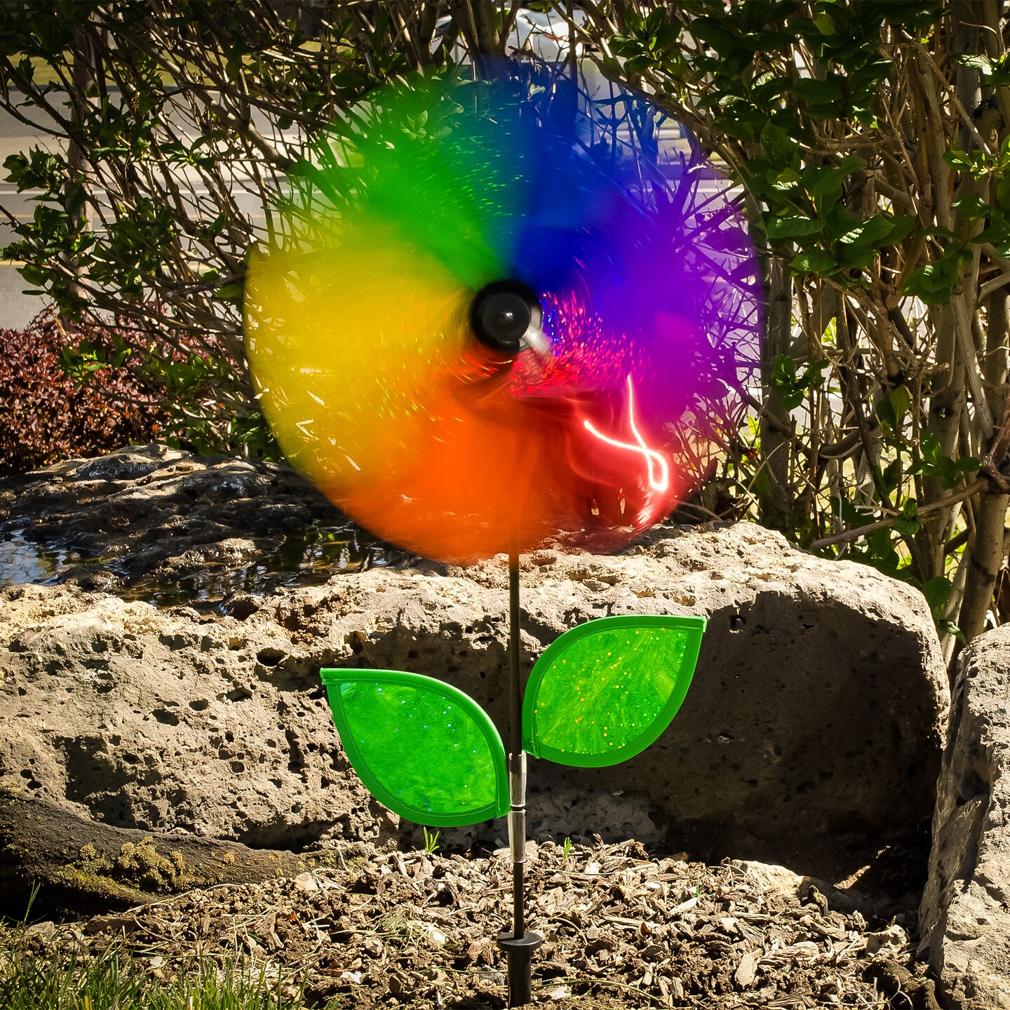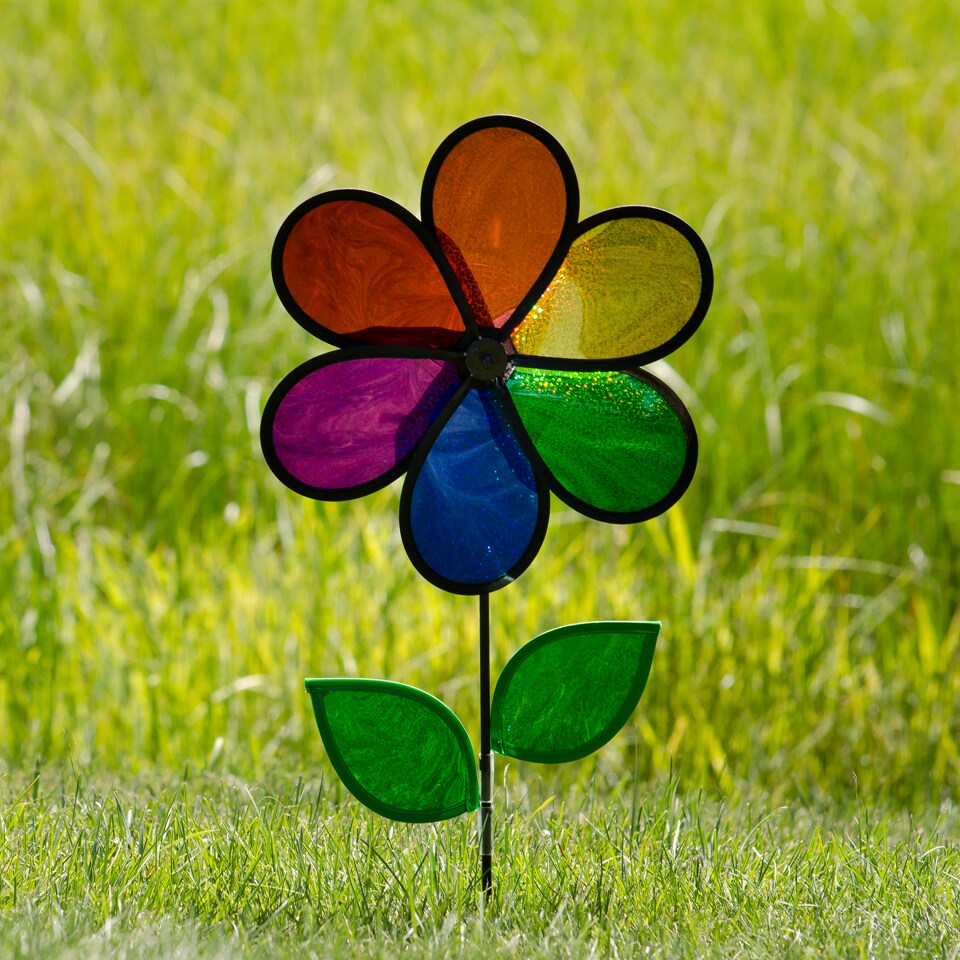 In the Breeze Rainbow Sparkle Flower Spinner with Leaves, 12"