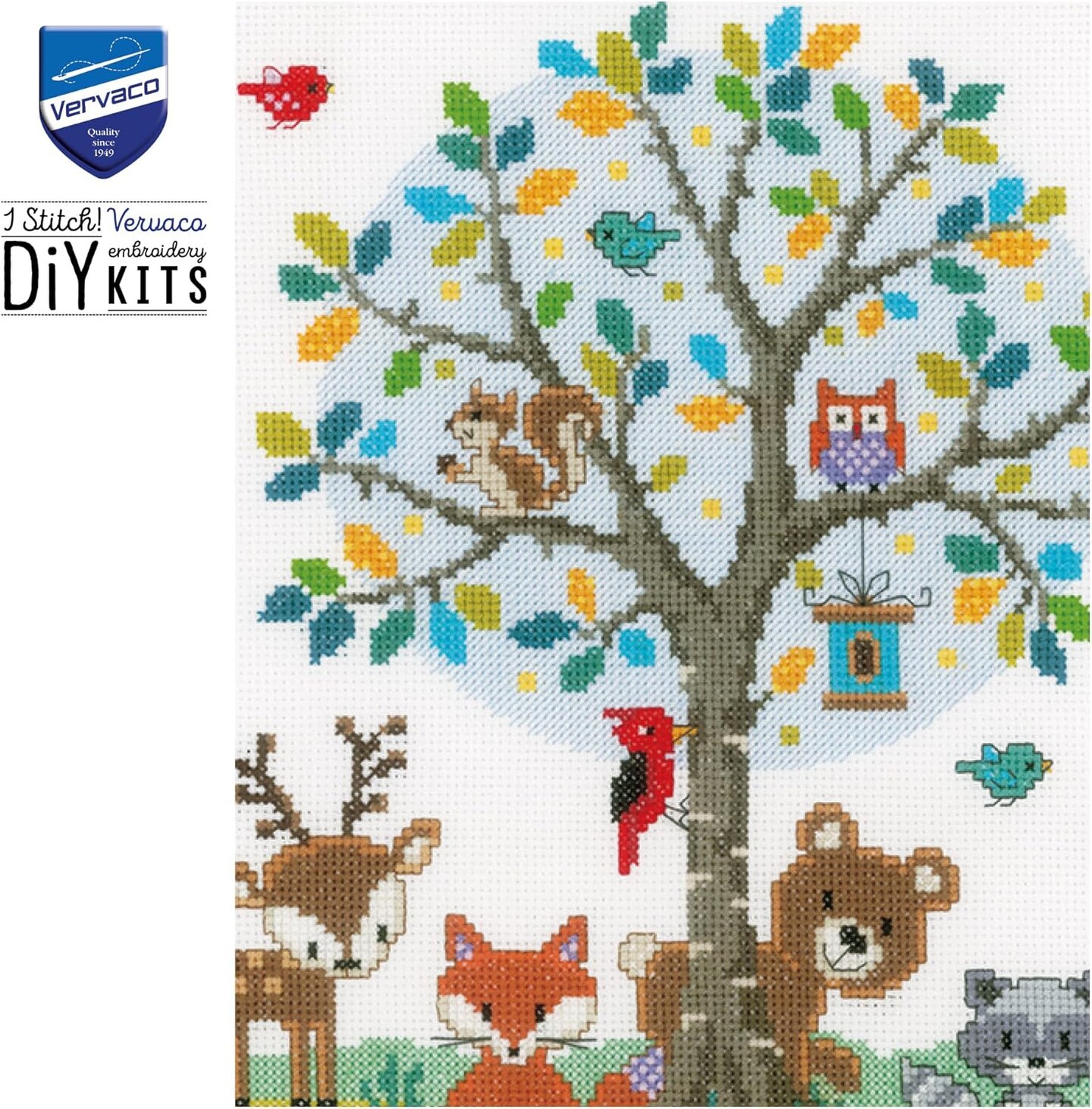 In The Woods Counted Cross Stitch Kit – 11.2" x 14" DIY Embroidery Set with Threads, Fabric & Instructions, Perfect for Beginners and Handmade Gifts