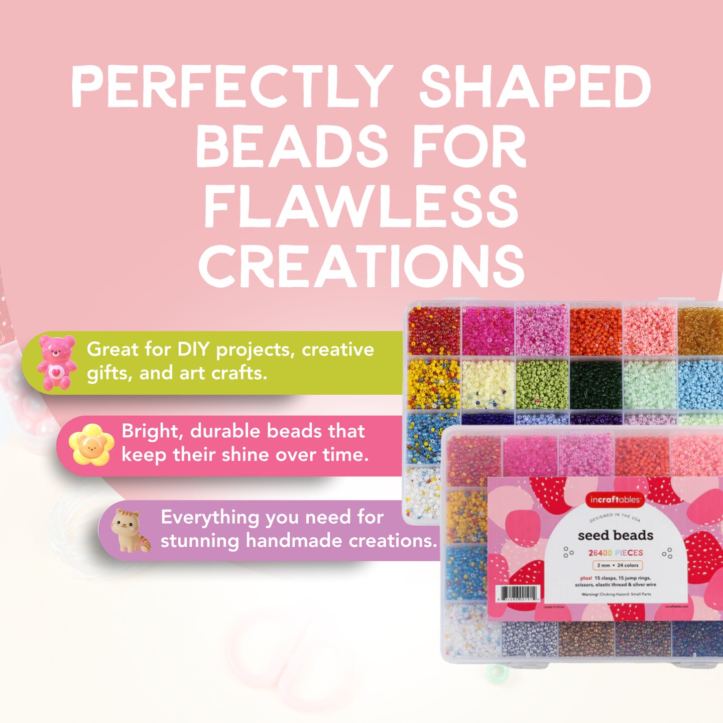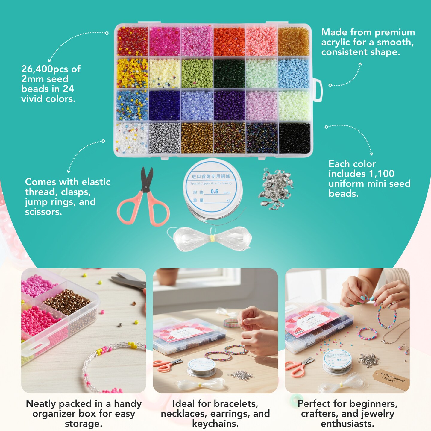 Incraftables 26400pcs Seed Beads for Jewelry Making (24 Colors). Best Waist Small 2mm Glass Bead Kit for DIY Bracelet & Necklace with Clasps, Jump Rings, Elastic String & Organizer for Adults & Kids