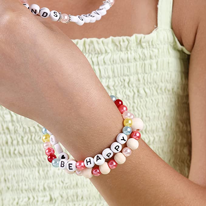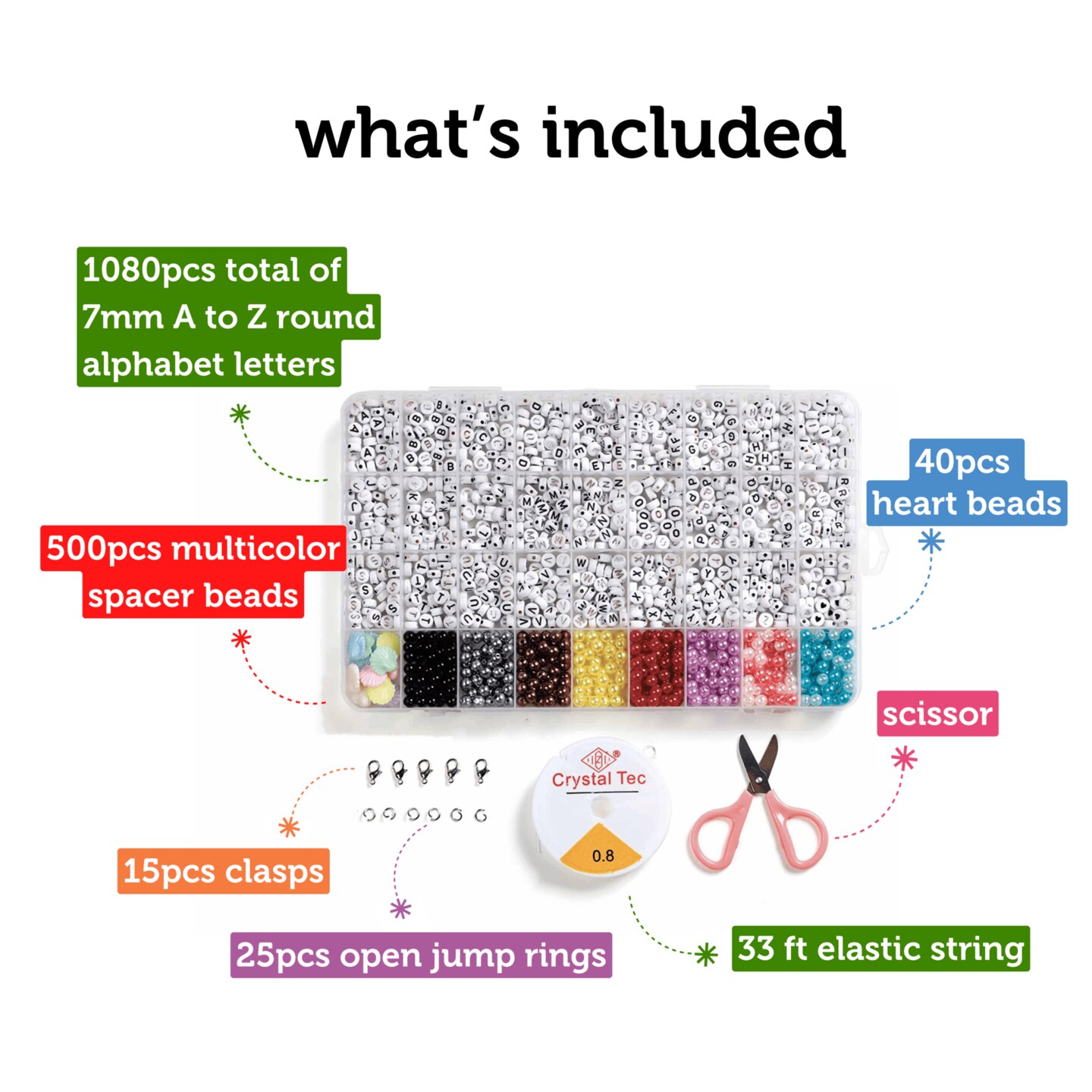 Incraftables 3 Styles Letter Beads for Jewelry Making (7mm, 1080pcs). A-Z Black, Gold & Rose Gold Alphabet for DIY Friendship Bracelets & Crafts. ABC & Heart Bead w/ Elastic String, Clasps & Organizer