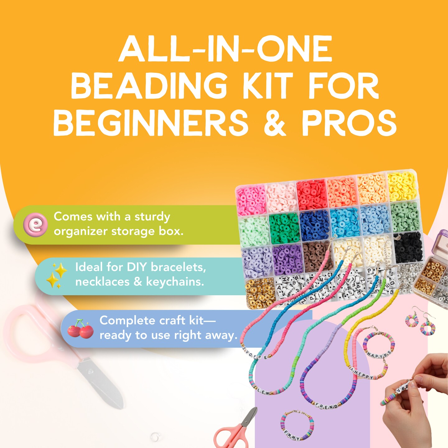 Incraftables 6mm Clay Beads for Bracelets Making (2000pcs) 18 Colors Set. Best Polymer Clay Heishi Beads for DIY Jewelry. Thin Flat Round Disc Small Beads Bulk Kit w/ Spacer, Letter Beads & String