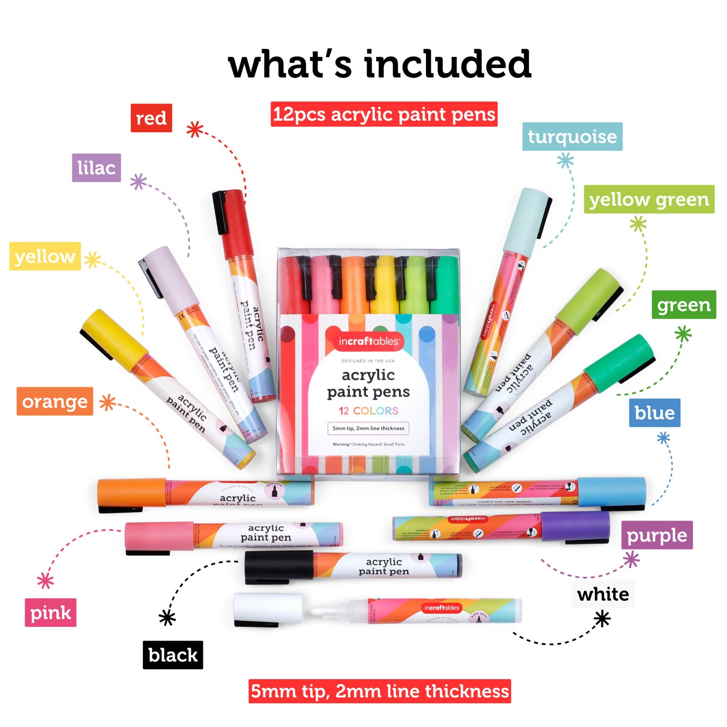 Incraftables Acrylic Paint Pens (12 Colors). Paint Markers for Rocks, Canvas, Wood, Plastic, Fabric, Metal & Glass. Best Acrylic Paint Markers. Stone & Rock Painting Markers Set for Kids & Adults