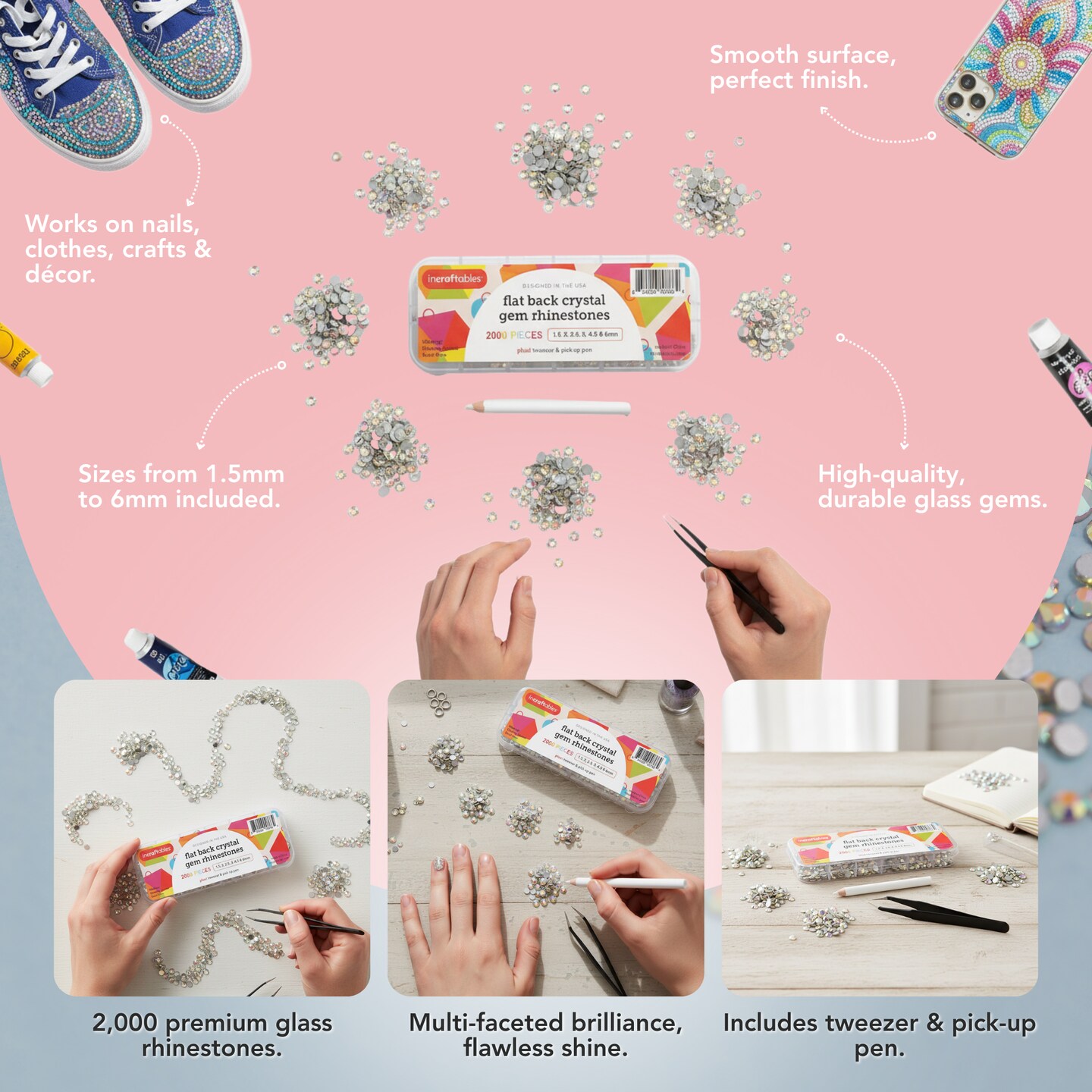 Incraftables Assorted Crystal Rhinestones (2000pcs). AB Crystal Rhinestone Stickers. Assorted Clear Rhinestones Big & Small (1.5-6mm). Bulk Silver Flat Back Gems For DIY Crafts, Clothes, Nails & Shoes