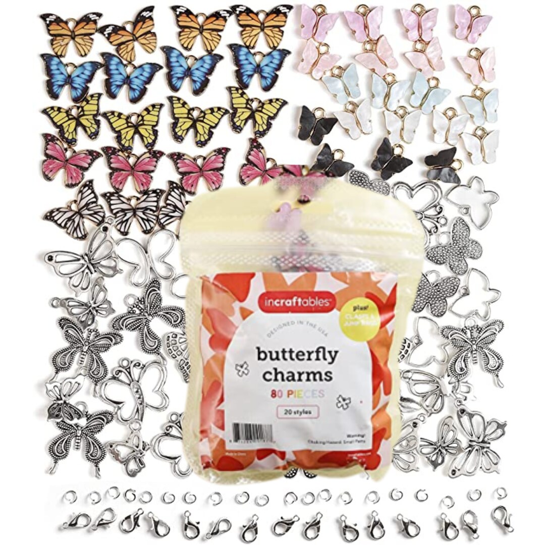 Incraftables Butterfly Charms Pendants for DIY Jewelry, Bracelets, Earring, Keychain & Necklace Making. Bulk Assorted Lot Pendant Charm set for Bracelet, Bangle & Crafting Supplies 80pcs (20 Styles)