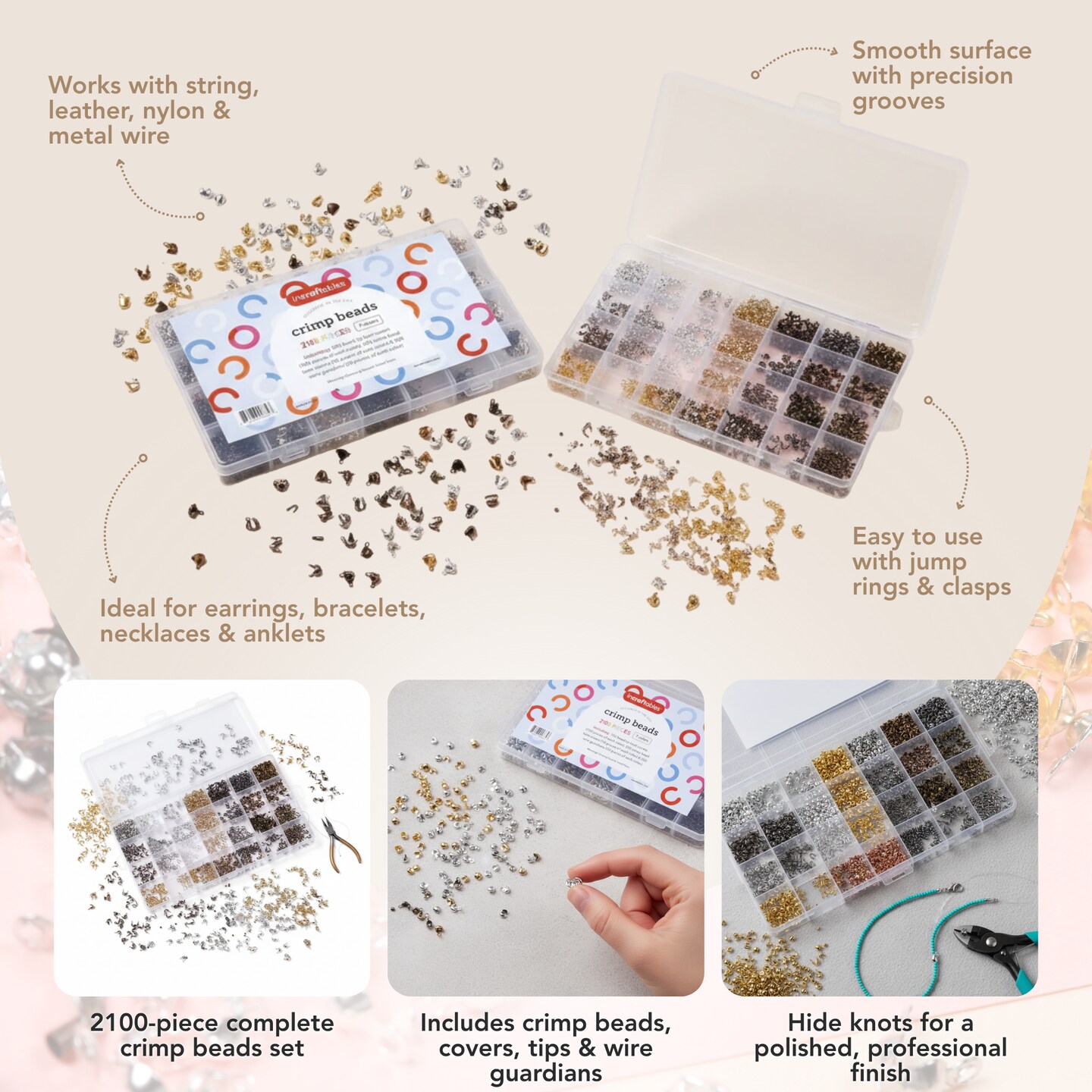 Incraftables Crimp Beads and Covers for Jewelry Making (2100 pcs). Assorted Crimp Beads for Jewelry Making (7 colors). Best Crimp Bead Covers, Crimp Tubes, Crimping Tips Knot Covers & Wire Guardians