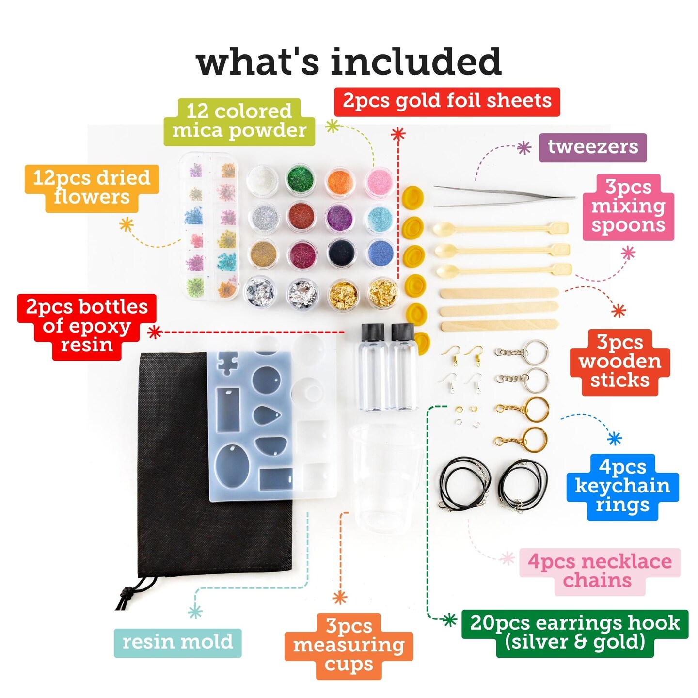 Incraftables Epoxy Resin Kit for Beginners. Resin Supplies set for Kids & Adults. Epoxy Resin Kit with mold, Epoxy Bottles, Dried Flowers, Mica powders, Foils, measuring cups & Jewelry Making Supplies