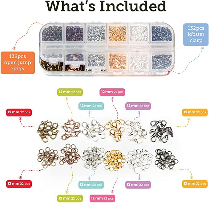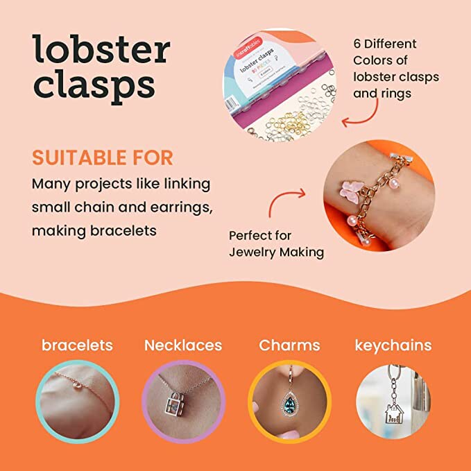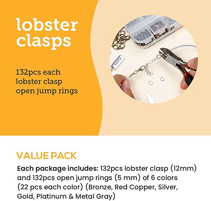 Incraftables Lobster Clasps for Jewelry Making (6 Colors) with Open Jump Rings. Small Necklace & Bracelet Lobster Claw Clasp Clips and Closures (12 mm) (Bronze, Copper, Silver, Gold, Platinum & Gray)