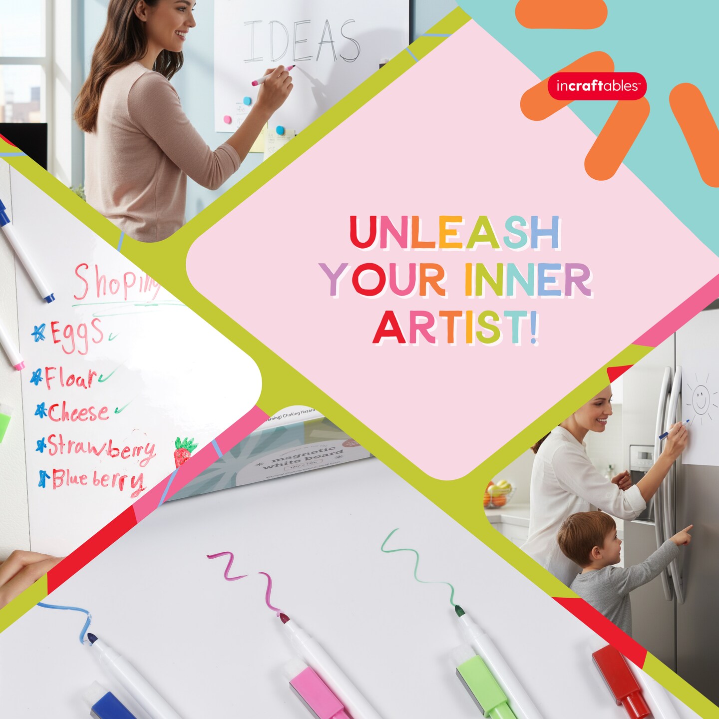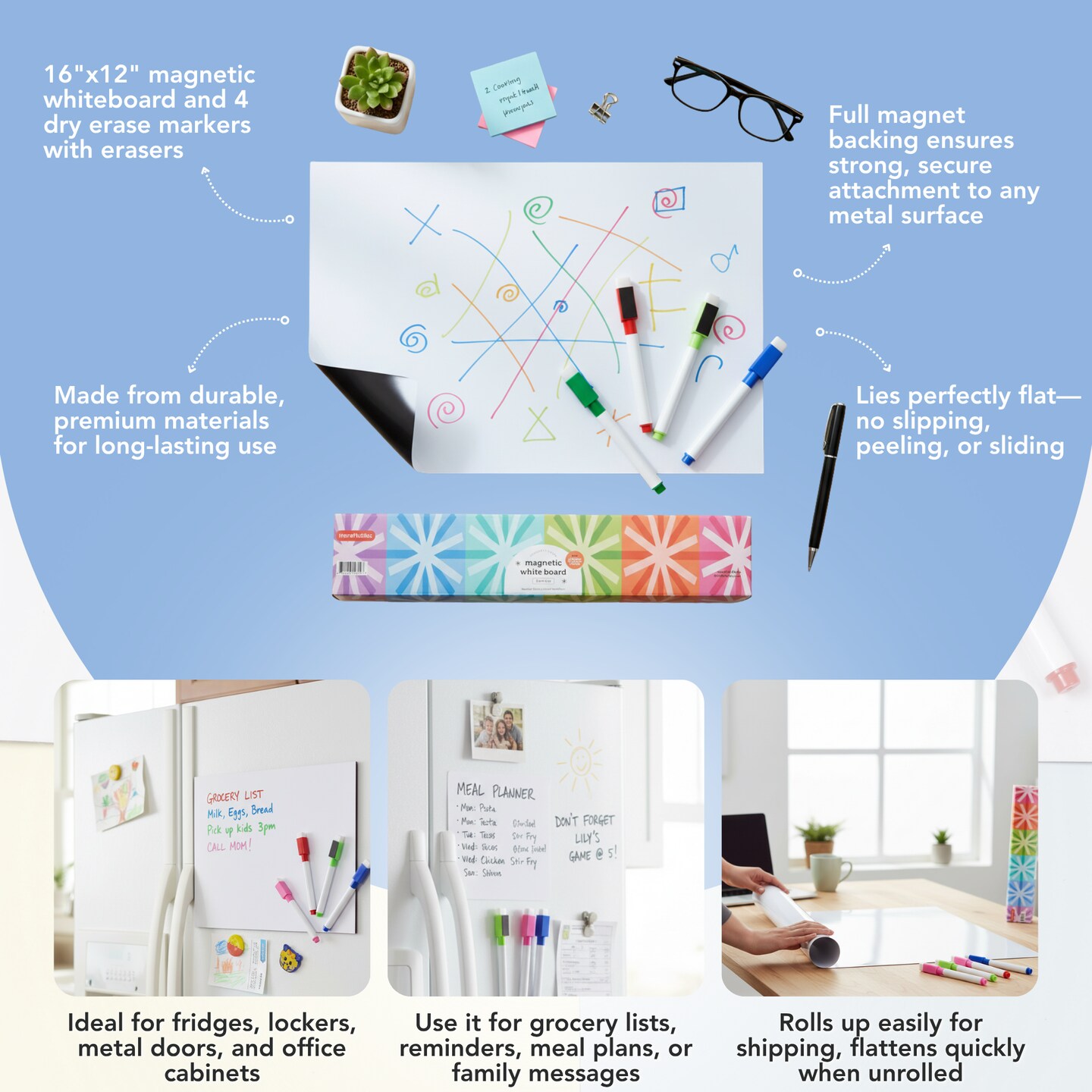 Incraftables Magnetic Whiteboard 16”x12” with 4pcs Markers with Eraser. Small Magnetic Dry Erase Board. Flexible White Board Magnetic Planner for Refrigerator. Magnet Fridge Board for Home & Kitchen