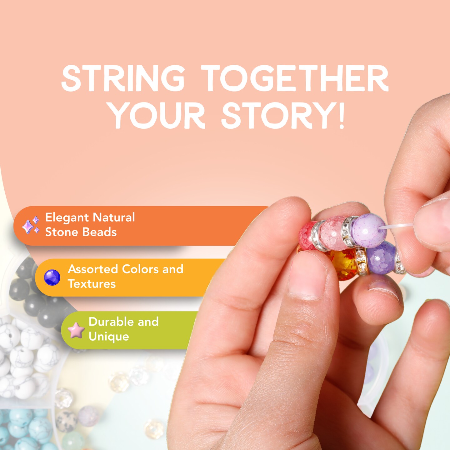 Incraftables Natural Stone Beads 12 Colors 240pcs Set for DIY Jewelry, Necklace & Bracelet Making. Assorted Real Crystal Chakra Bead Kit with Spacer Beads, Elastic String & Organizer for Adults & Kids