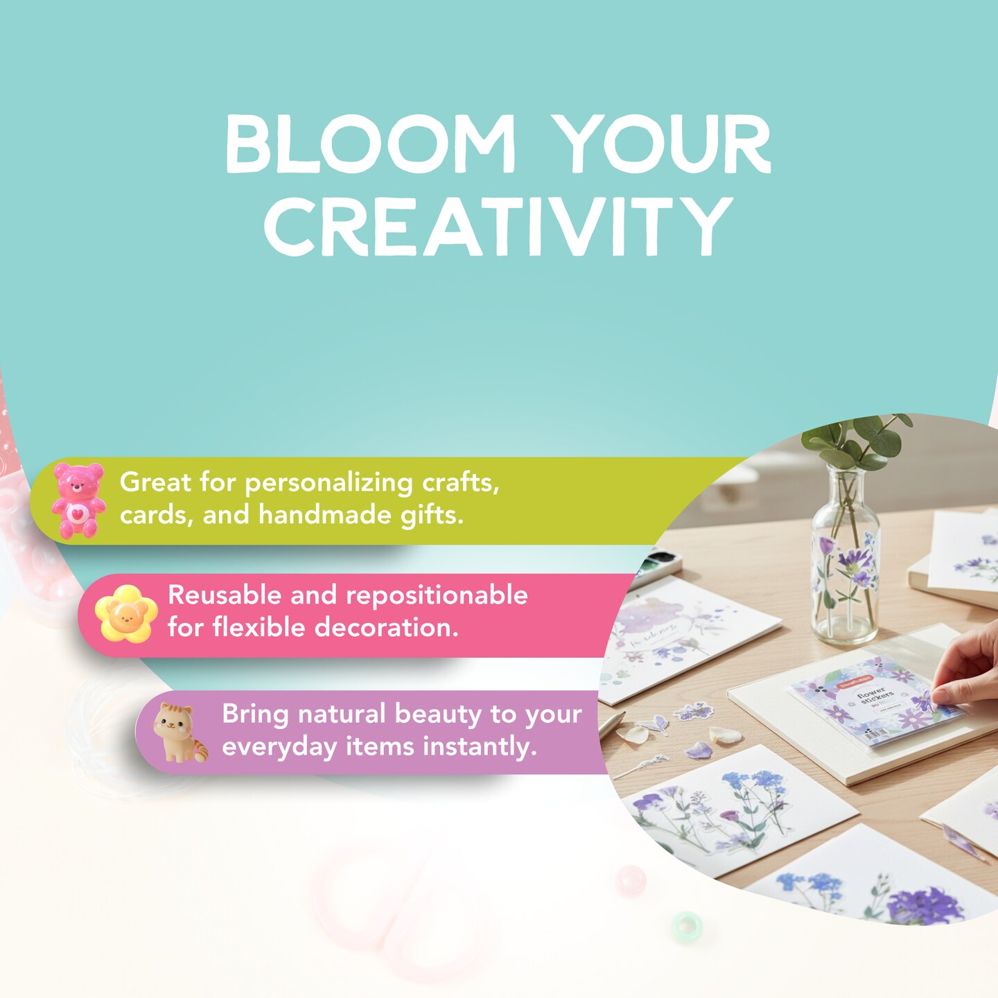 Incraftables Self Adhesive Flower Stickers for Kids (80pcs). Natural Flower Stickers for Scrapbooking. Large & Small Flower Stickers for Water Bottles. Transparent Spring Floral Decals for Crafts