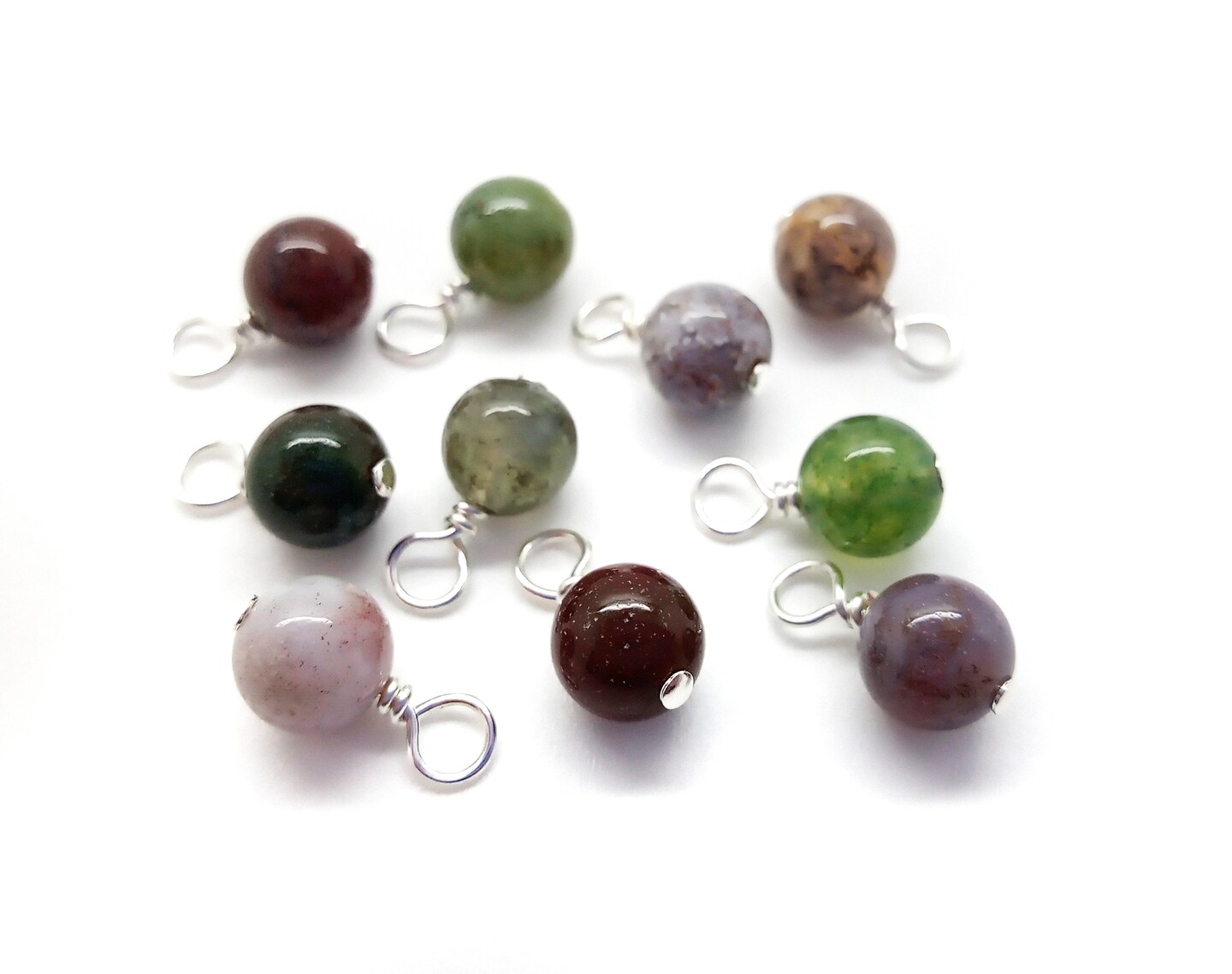 Indian Agate 6mm Bead Dangles, Small Fancy Jasper Gemstone Charms, 10 pieces, Adorabilities