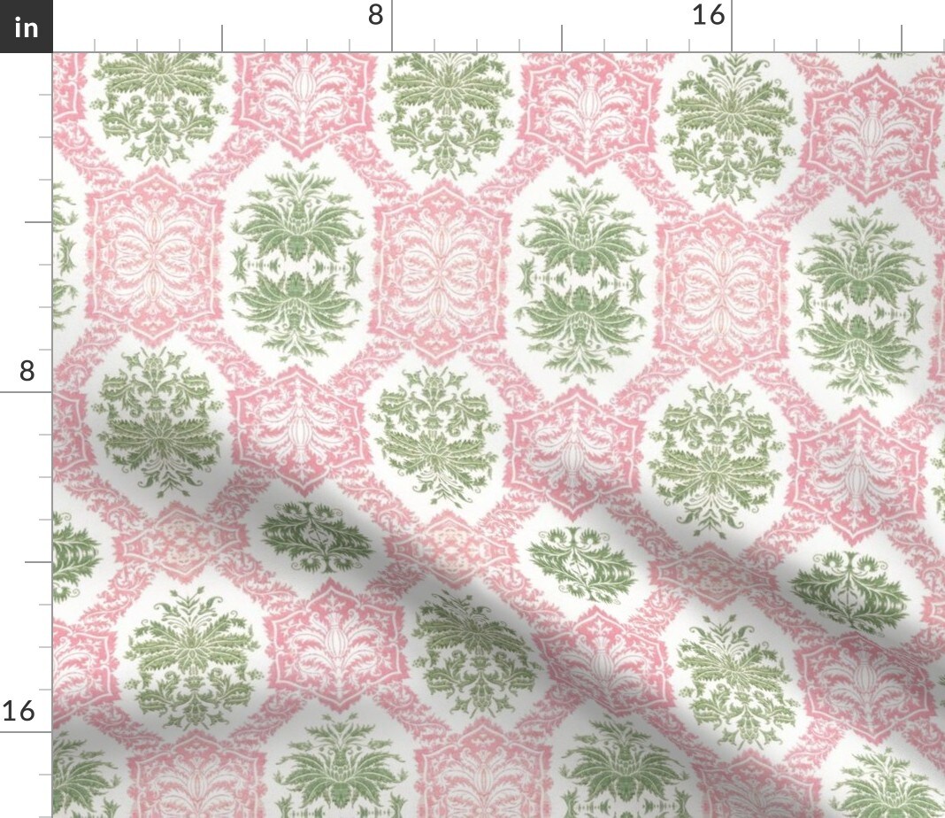 Indian Block Print Bombay Pink And Green Colonial Custom Printed Fabric by Spoonflower Various Fabrics by the Yard or Fat Quarter