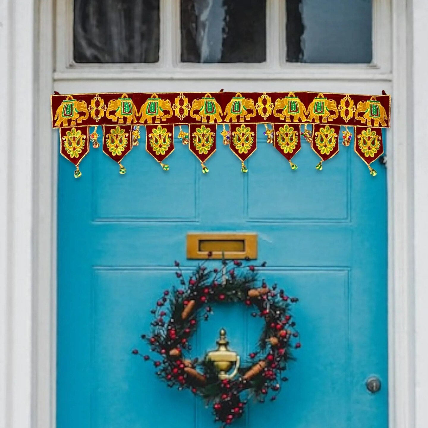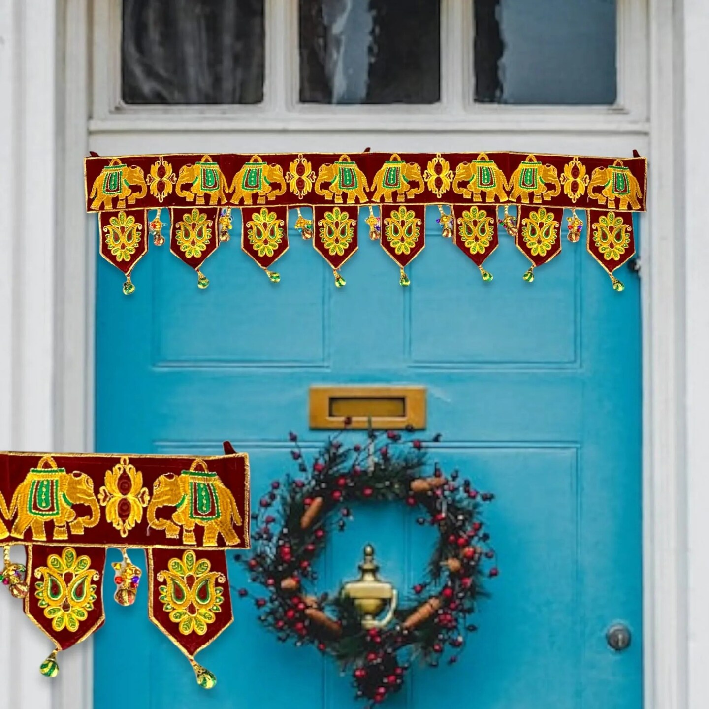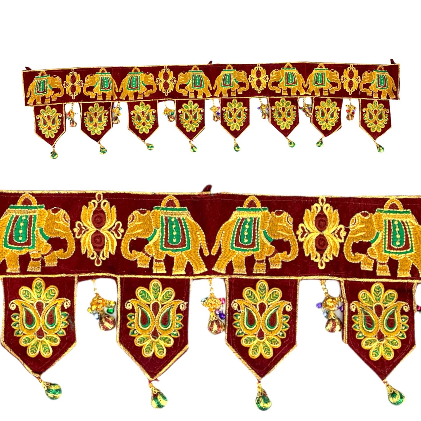 Indian Fabric Door Toran 36 Inch Bhandarwal Hanging Valance Elephant Velvet Traditional Wall Decorative for Window Home Temple Decor Wedding Diwali Navratri Puja Housewarming Decorations
