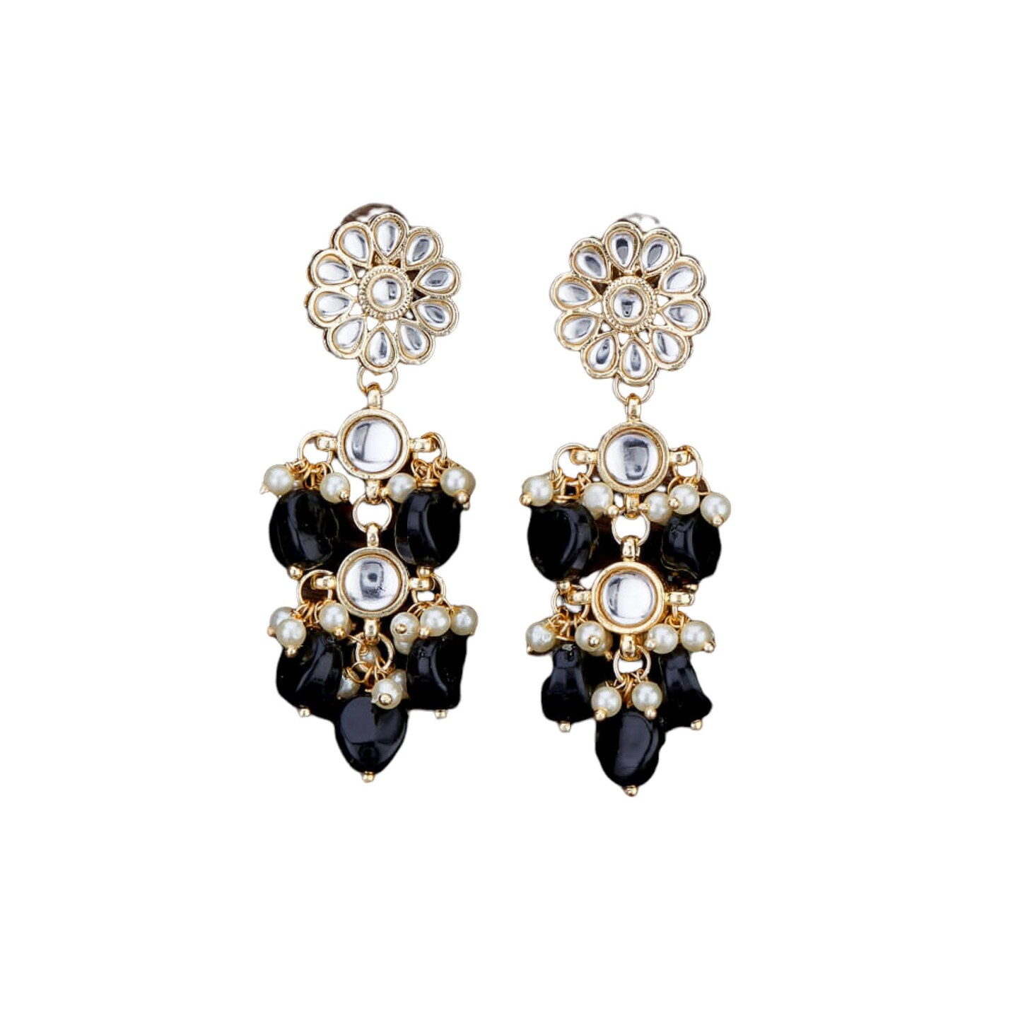 Indian Jhumka Earrings for Women - Large Floral Kundan Faux Pearls Drop Chanbali Earrings Indian Jhumki Ethnic Beaded Bollywood Style Dangle Earrings Jewelry for Bride Birthday Gift for Her