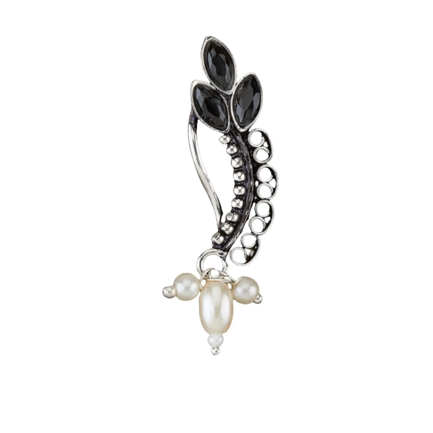 Indian Marathi Nath for Women Pearl Marathi Oxidized Nose Ring Indian Jewelry Nose Ring Clip-On Marathi Bridal Nathani Faux Pearl Non-Piercing Jewelry for Women - Birthday Gift For Her
