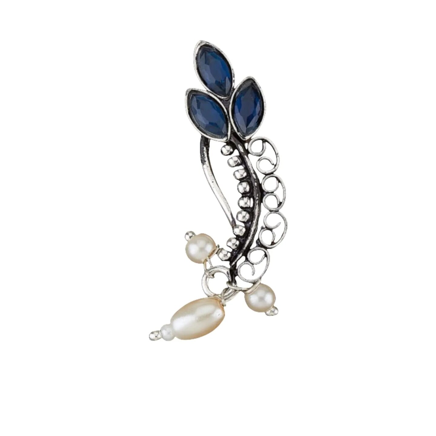 Indian Marathi Nath for Women Pearl Marathi Oxidized Nose Ring Indian Jewelry Nose Ring Clip-On Marathi Bridal Nathani Faux Pearl Non-Piercing Jewelry for Women - Birthday Gift For Her