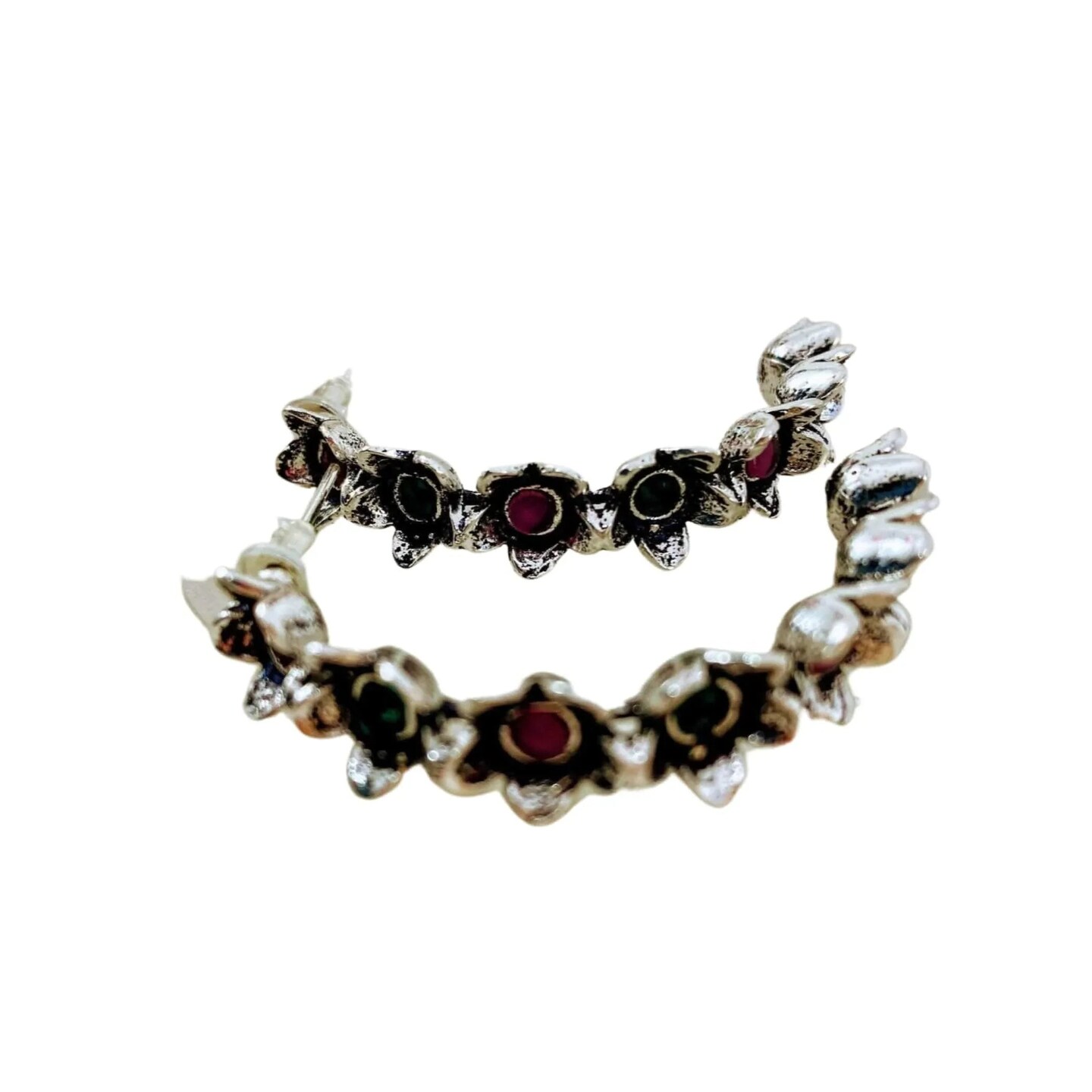 Indian Oxidized Half-Hoop Earrings for Women - Oxidized Flower Huggie Hoop Earrings Bohemian Inspired Half-Circle Design Bollywood Style Ear Jewellery for Bridesmaid | Birthday Gift for Her