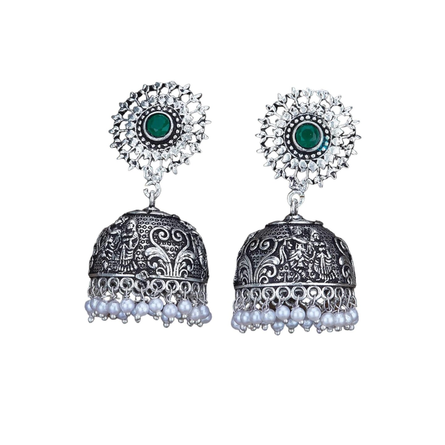 Indian Oxidized Jhumka Earrings for Women - Indian Floral Oxidized Jhumki Ethnic Chandbali Earrings Faux Pearls with Oxidized Platting Bollywood Style Dangle Earring Jewelry for Bride