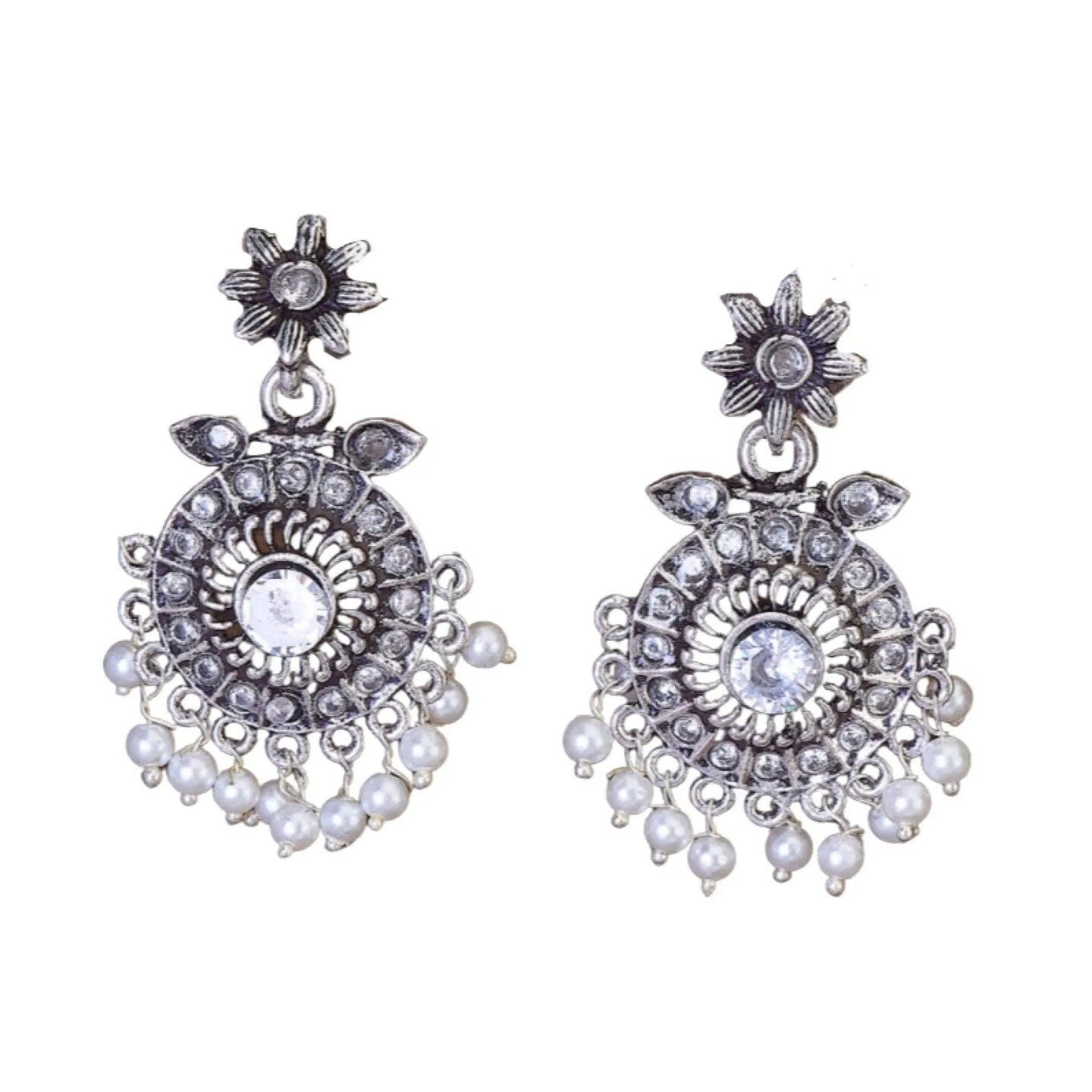 Indian Oxidized Jhumka Earrings for Women - Round Oxidized Jhumki Ethnic Chandbali Earrings Faux Pearls with Oxidized Platting Bollywood Style Dangle Earring Jewelry for Bride Gift for Her