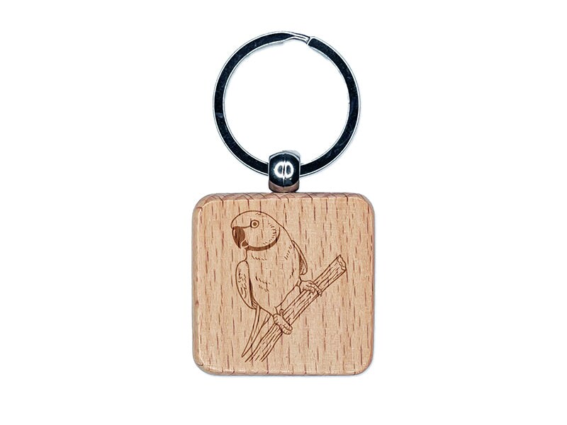 Indian Ring-Necked Parakeet Rose-Ringed Bird Parrot Engraved Wood Square Keychain Tag Charm