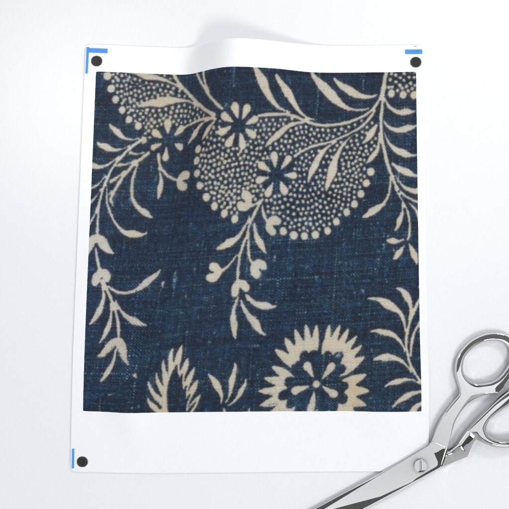 Indigo Floral Folk Art Traditional Vintage Vines Indigo Batik Custom Printed Fabric by Spoonflower Various Fabrics by the Yard or Fat Quarter