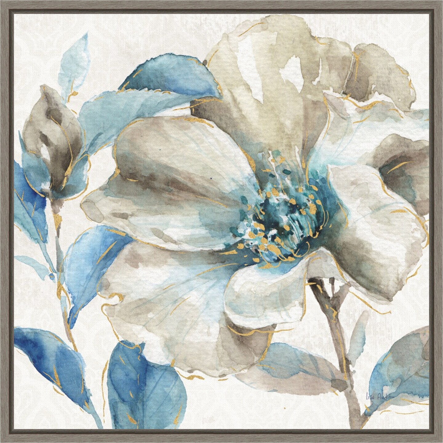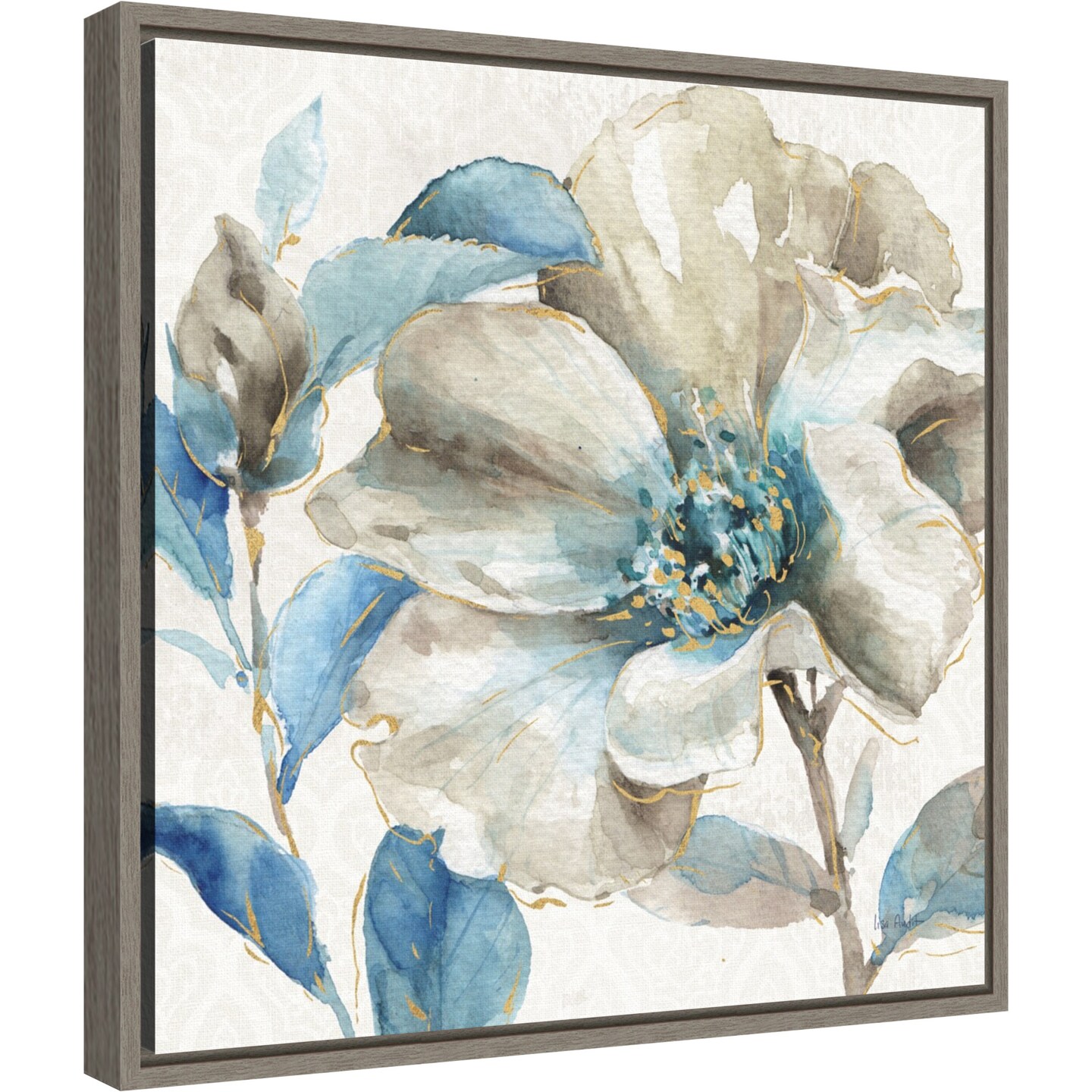 Indigold IV by Lisa Audit 16-in. W x 16-in. H. Canvas Wall Art Print Framed in Grey