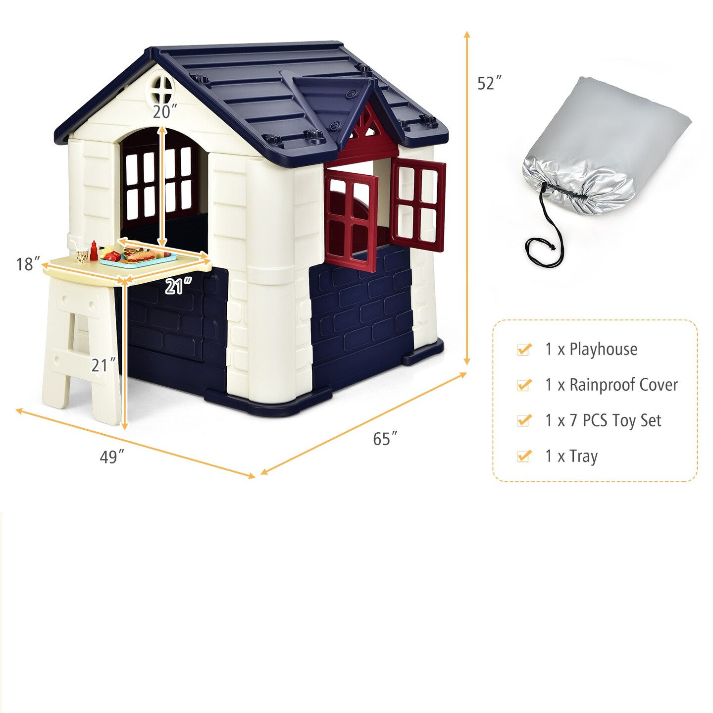 Indoor Outdoor Kids Playhouse Cottage Pretend House with Working Doors Windows
