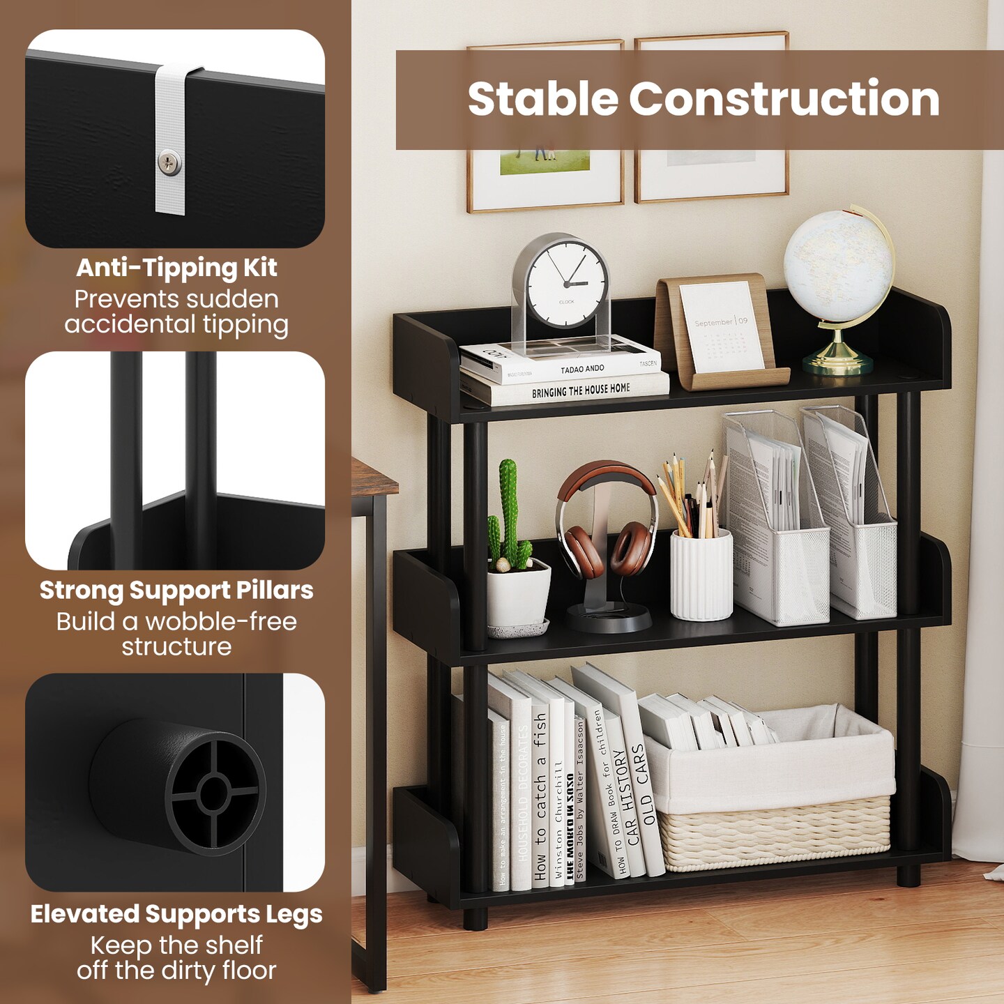 Industrial 3-Tier Bookshelf with Anti-Tipping Kit and Open Storage Shelves