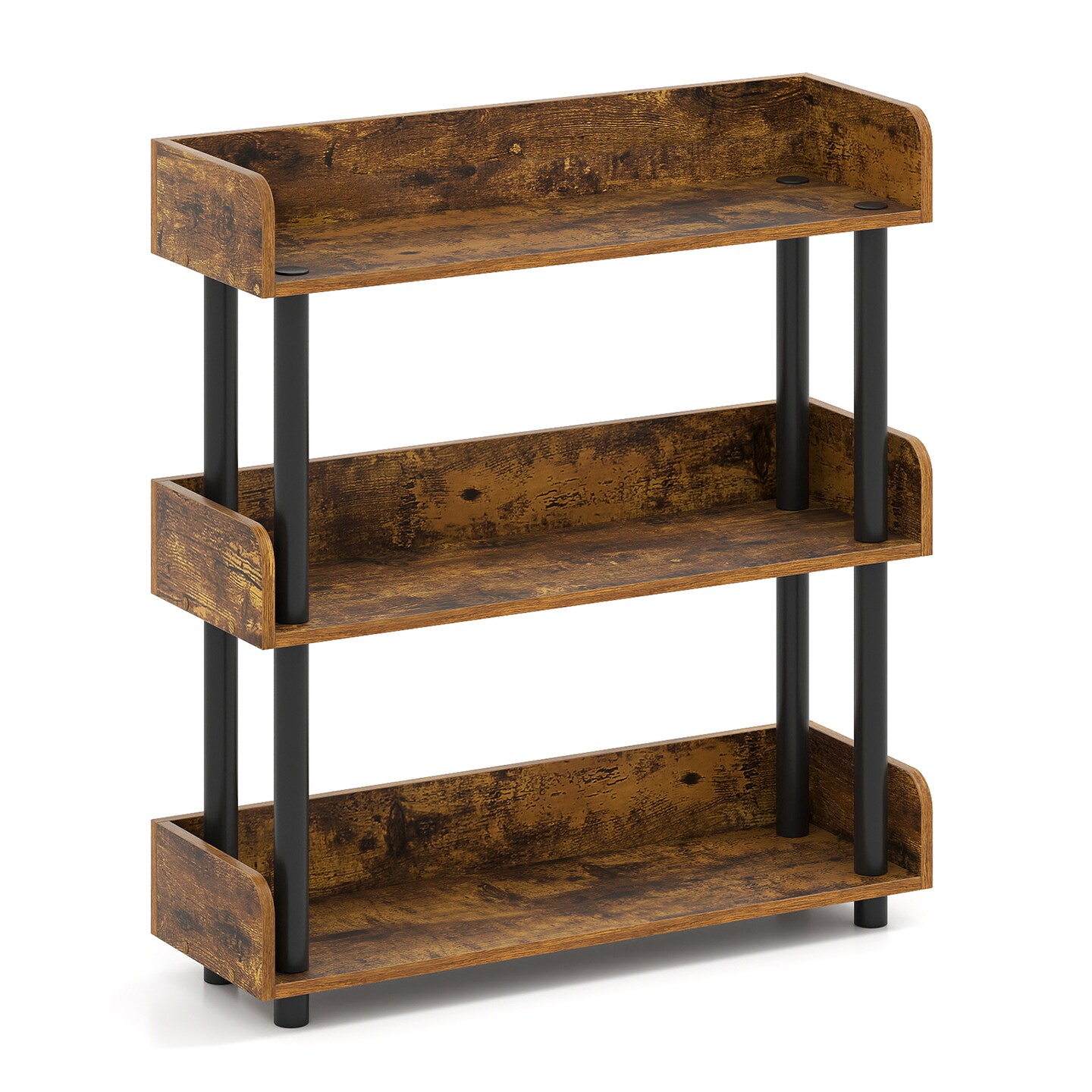 Industrial 3-Tier Bookshelf with Anti-Tipping Kit and Open Storage Shelves
