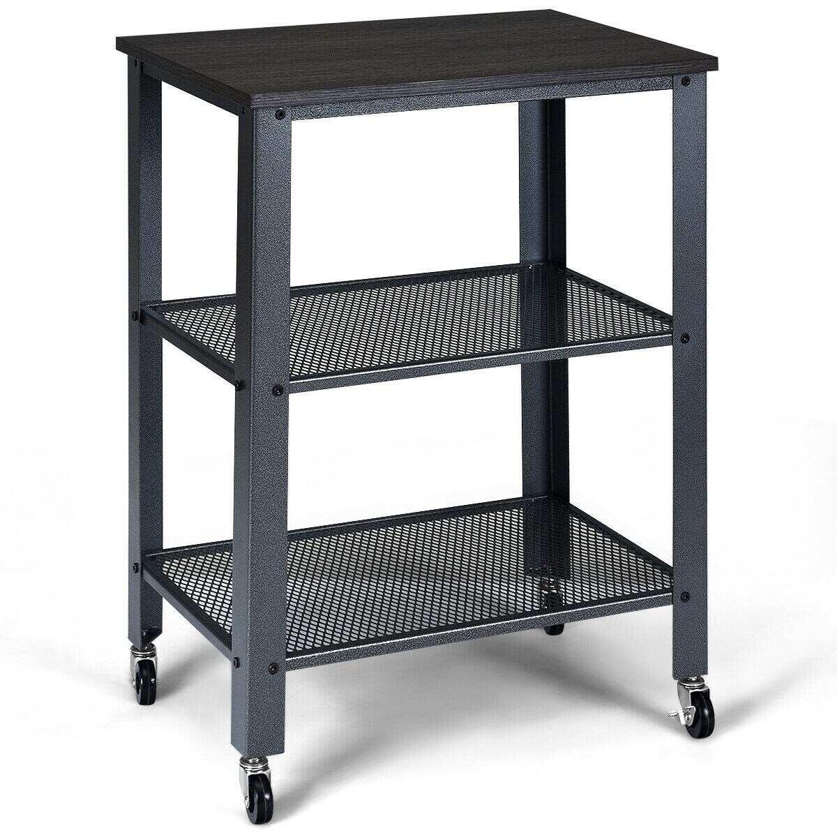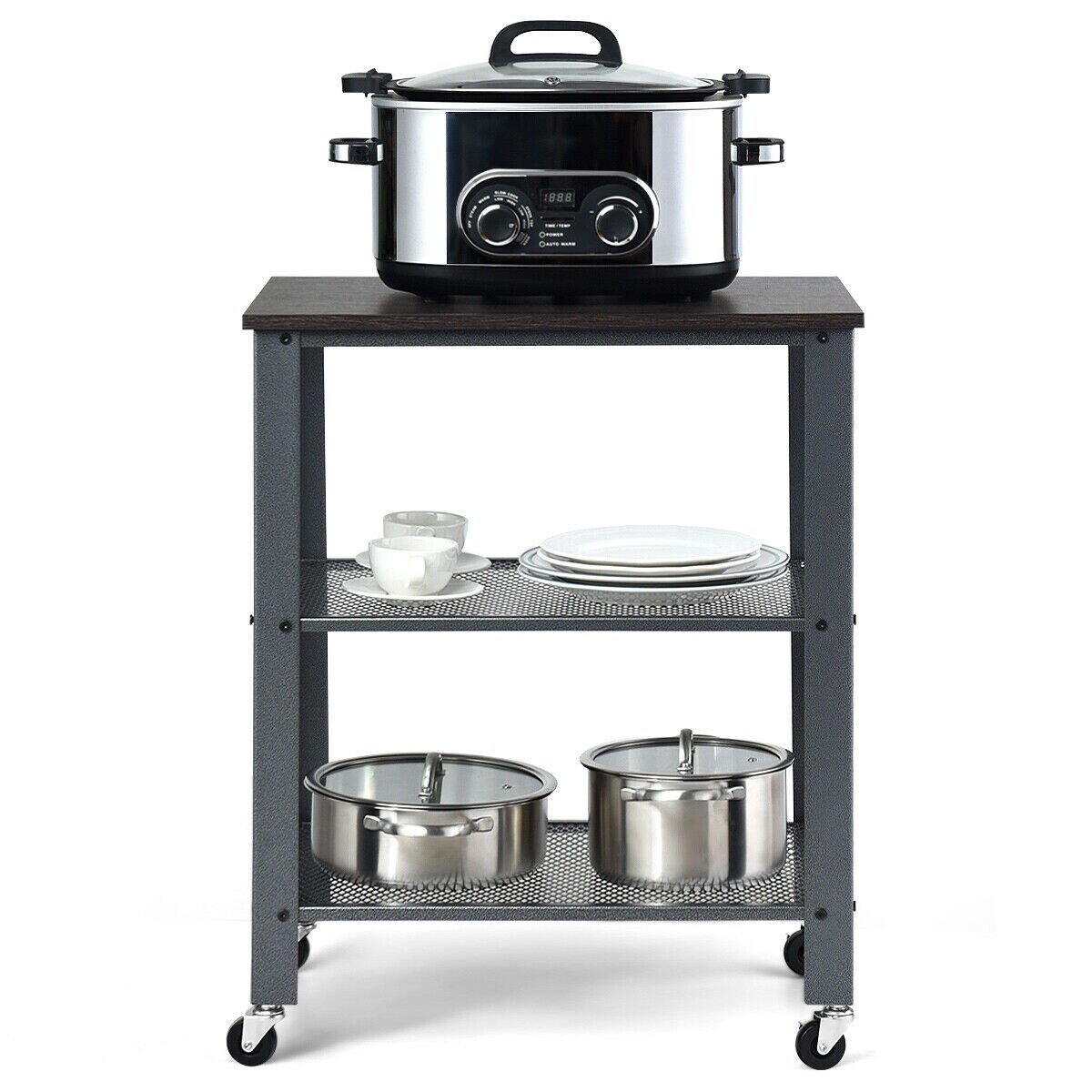 Industrial 3-Tier Utility Cart with Storage Hooks Swivel Wheels Metal Construction
