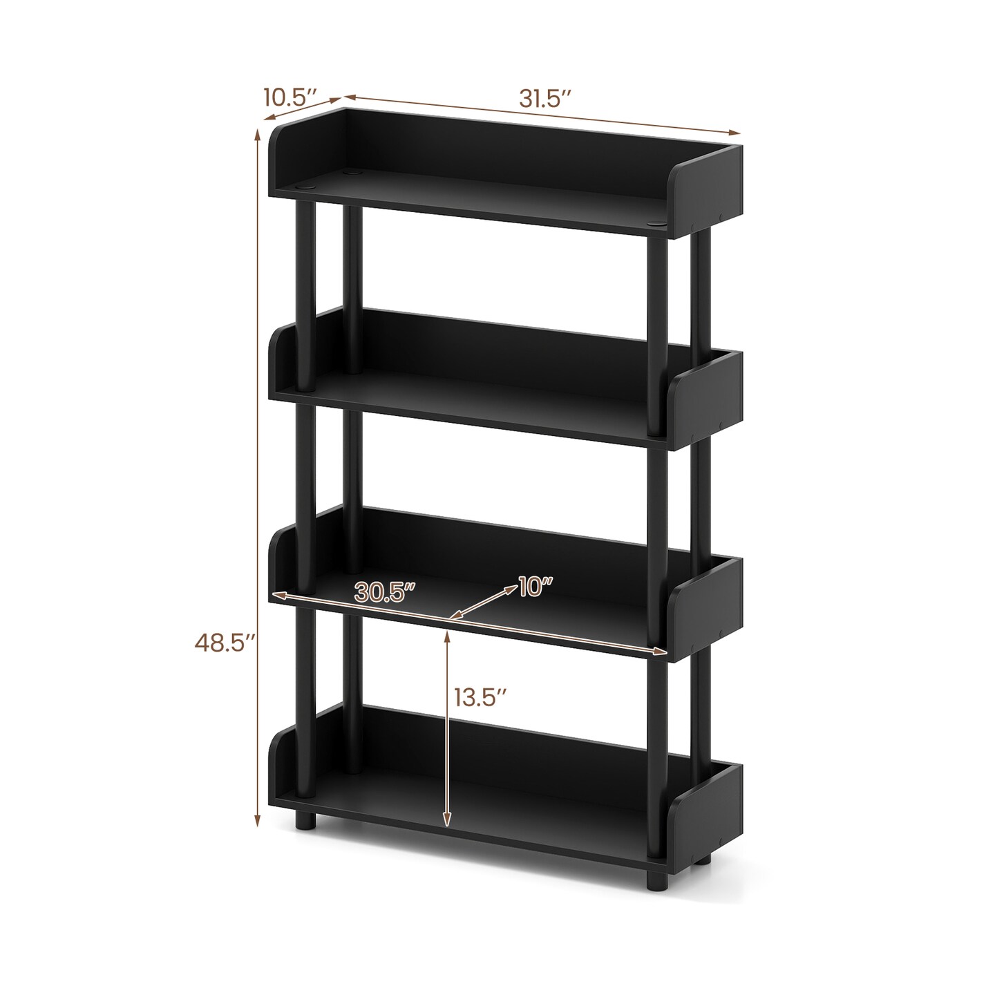Industrial 4-Tier Storage Bookshelf Open Bookcase with Anti-Tipping Safety Kit