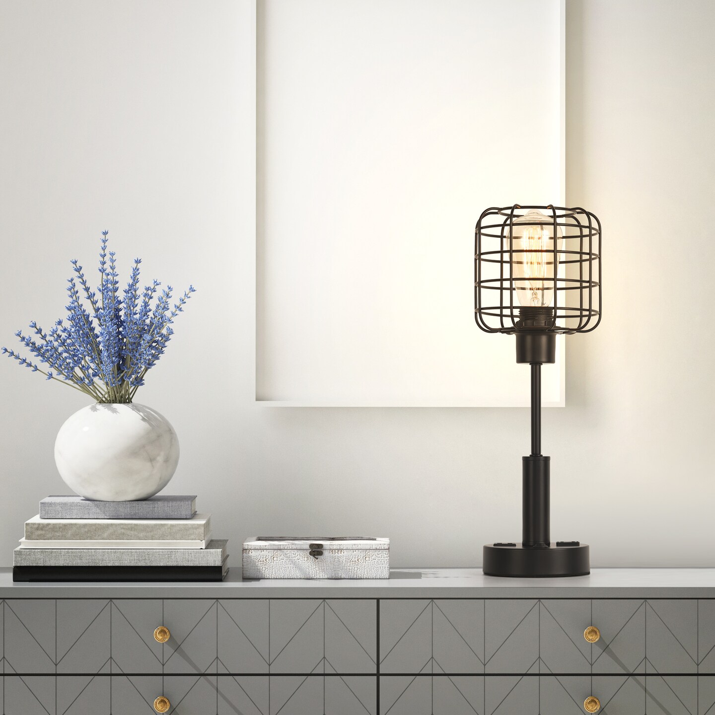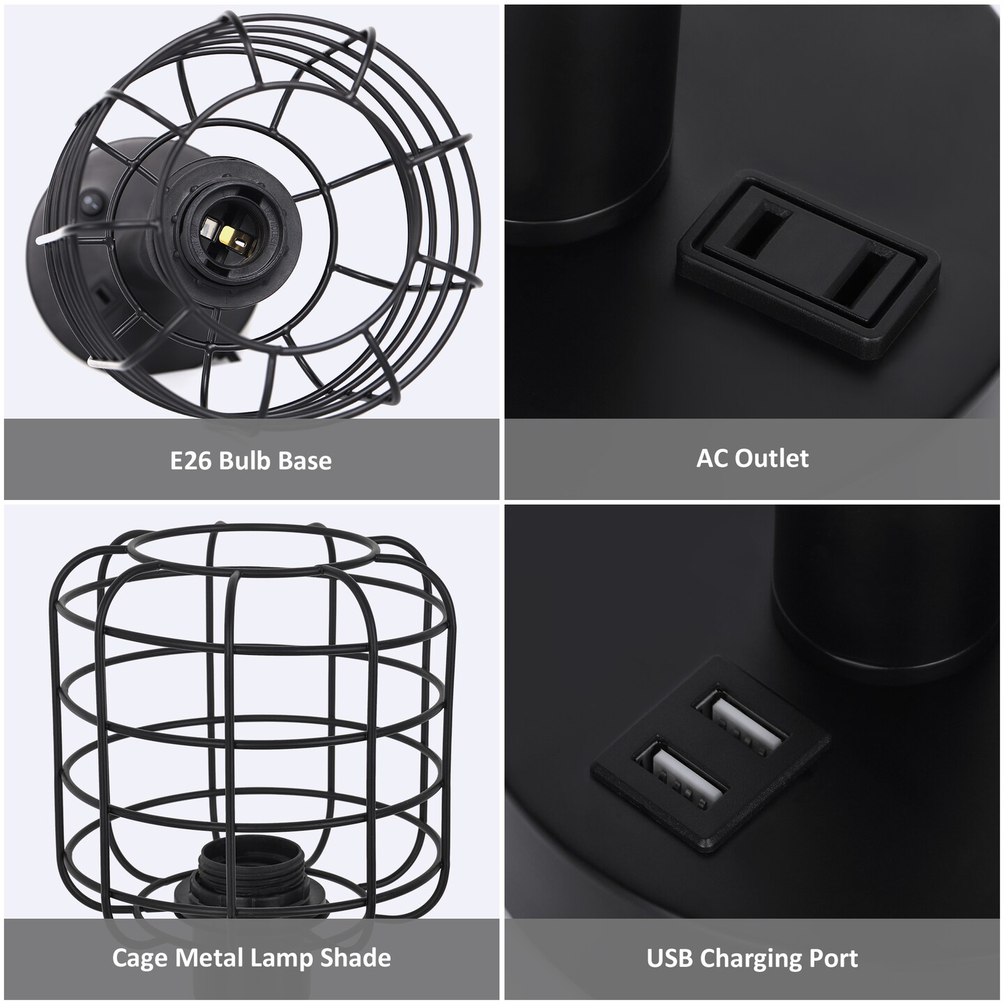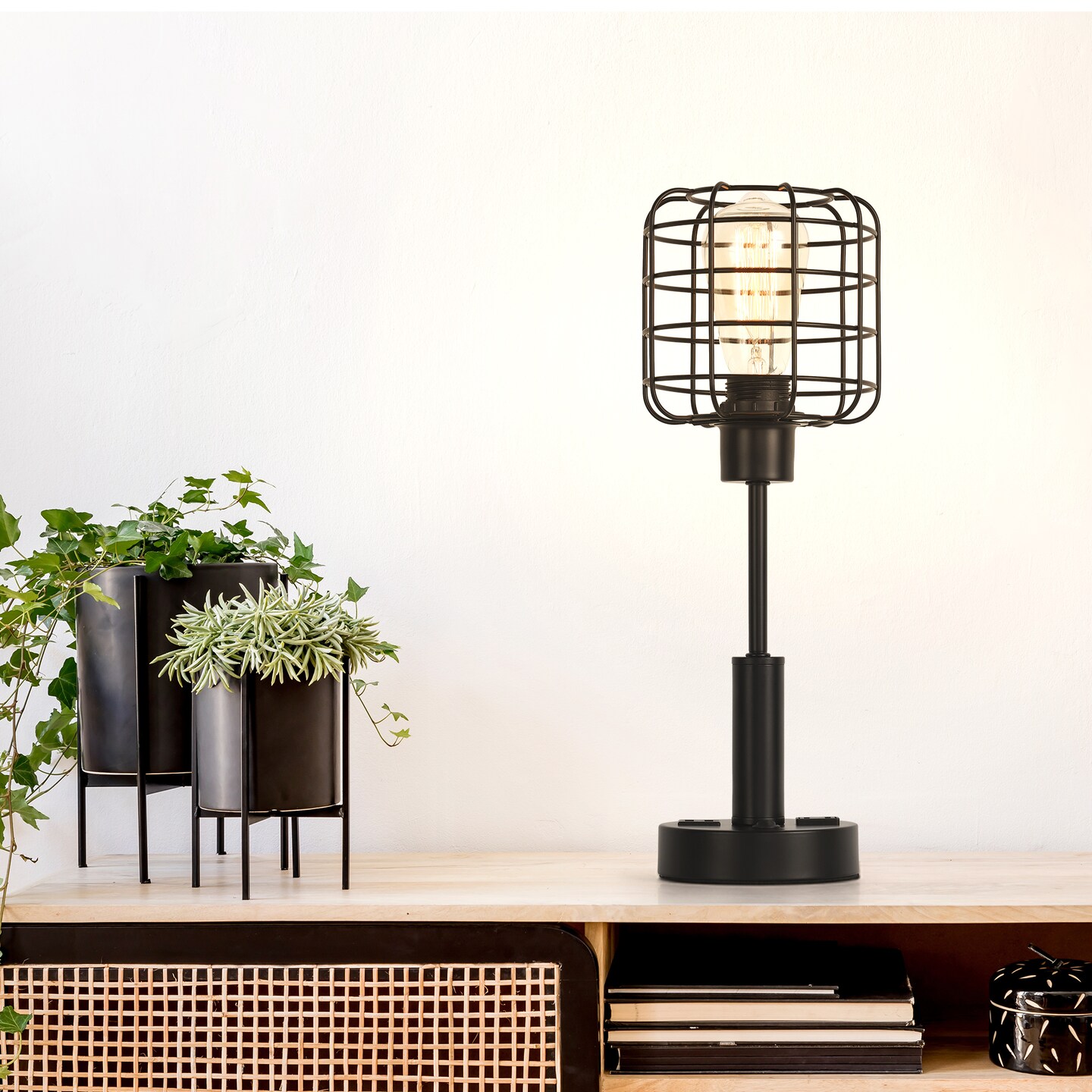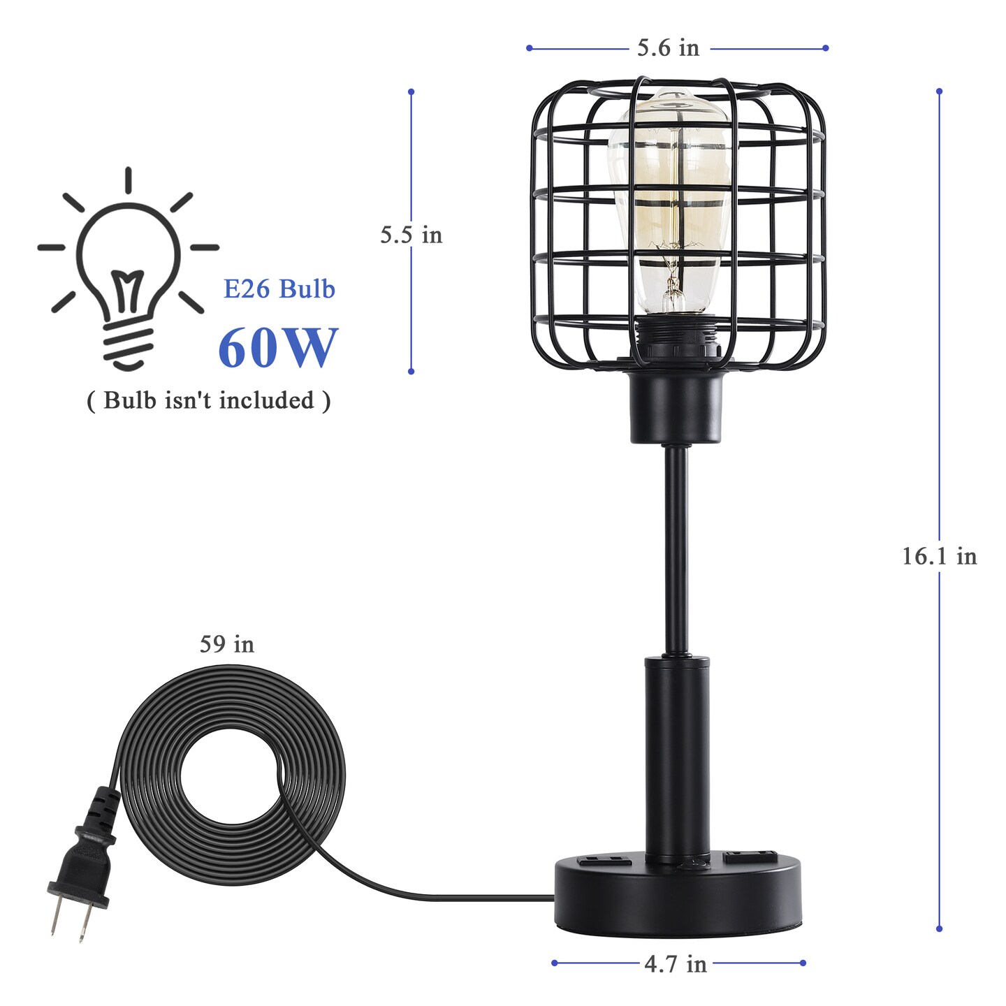 Industrial Desk Lamp with USB Interface Socket Metal Cage Shade