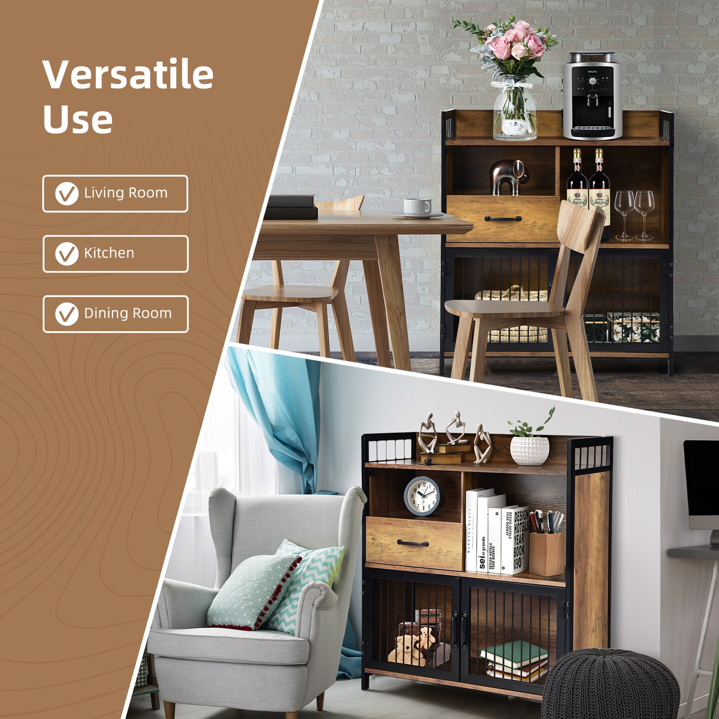Industrial Sideboard Cabinet with Open Shelves Drawer and Countertop Rustic Brown