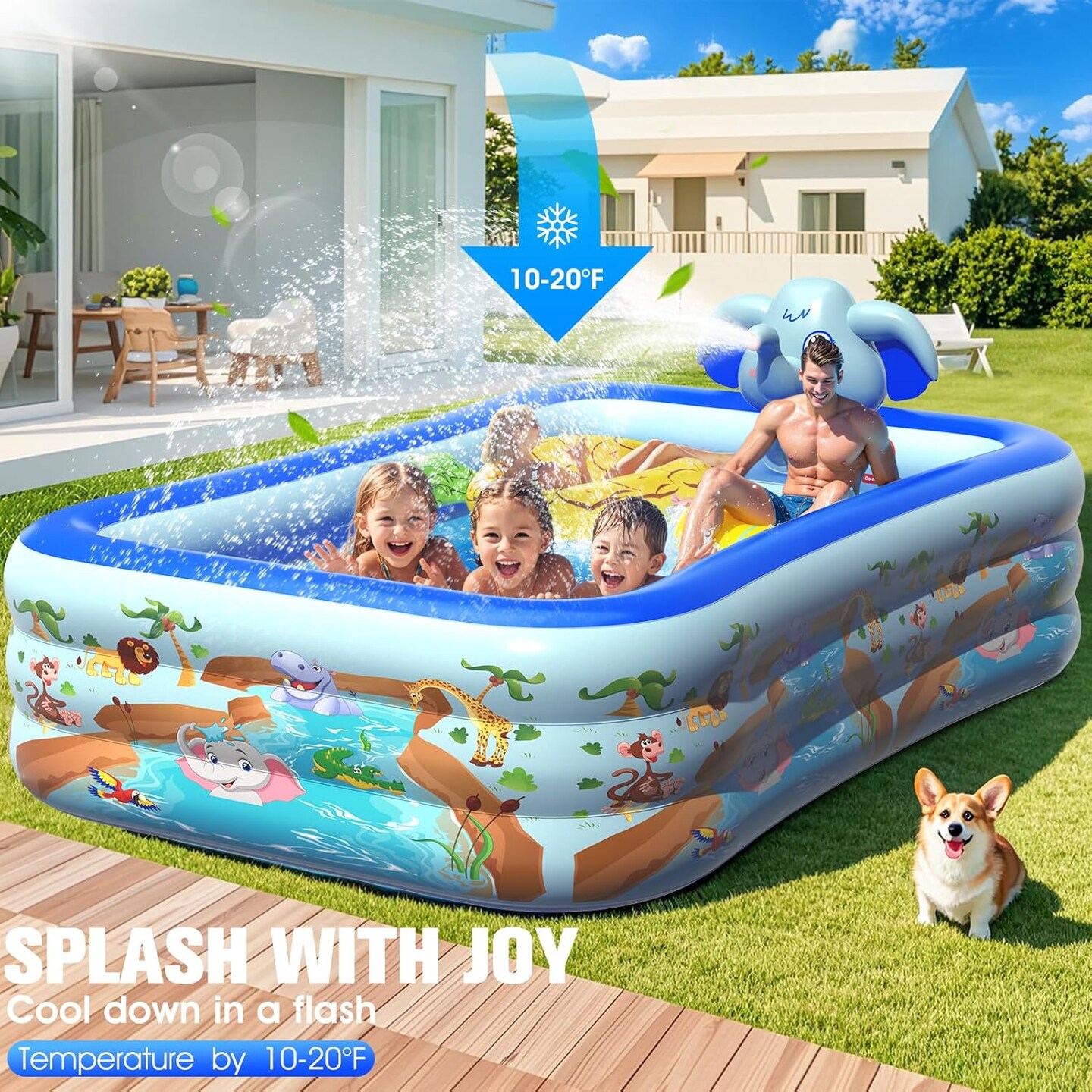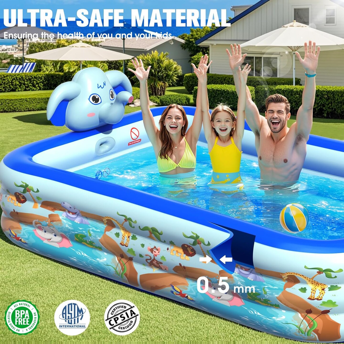 Inflatable Pools with Sprinkler,Upgraded Elephant Inflatable Swimming Pool,Kids Pools for Backyard,Large Inflatable Pool for Adults Blow up Pools,Oversized Thickened Family Inflatable Pool-Multi color
