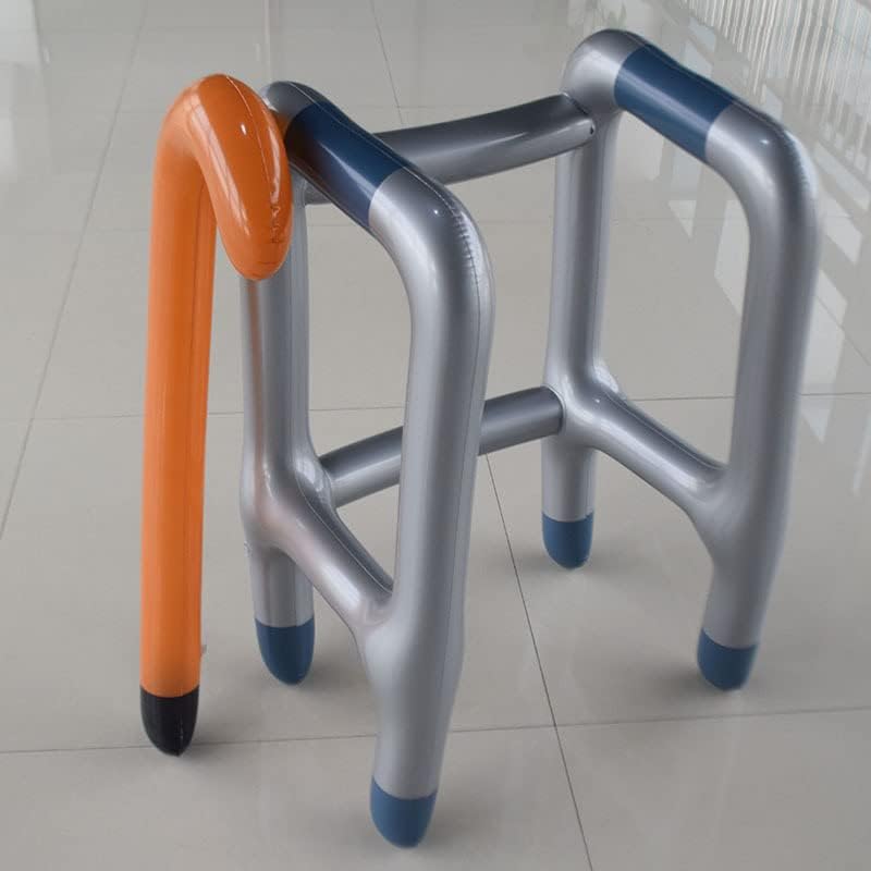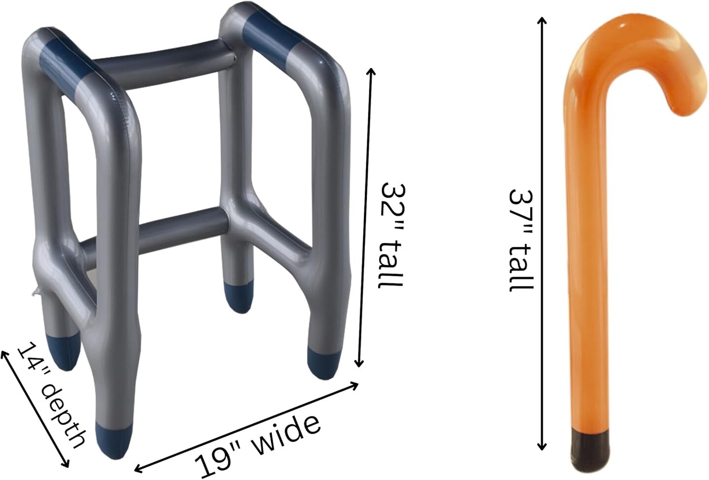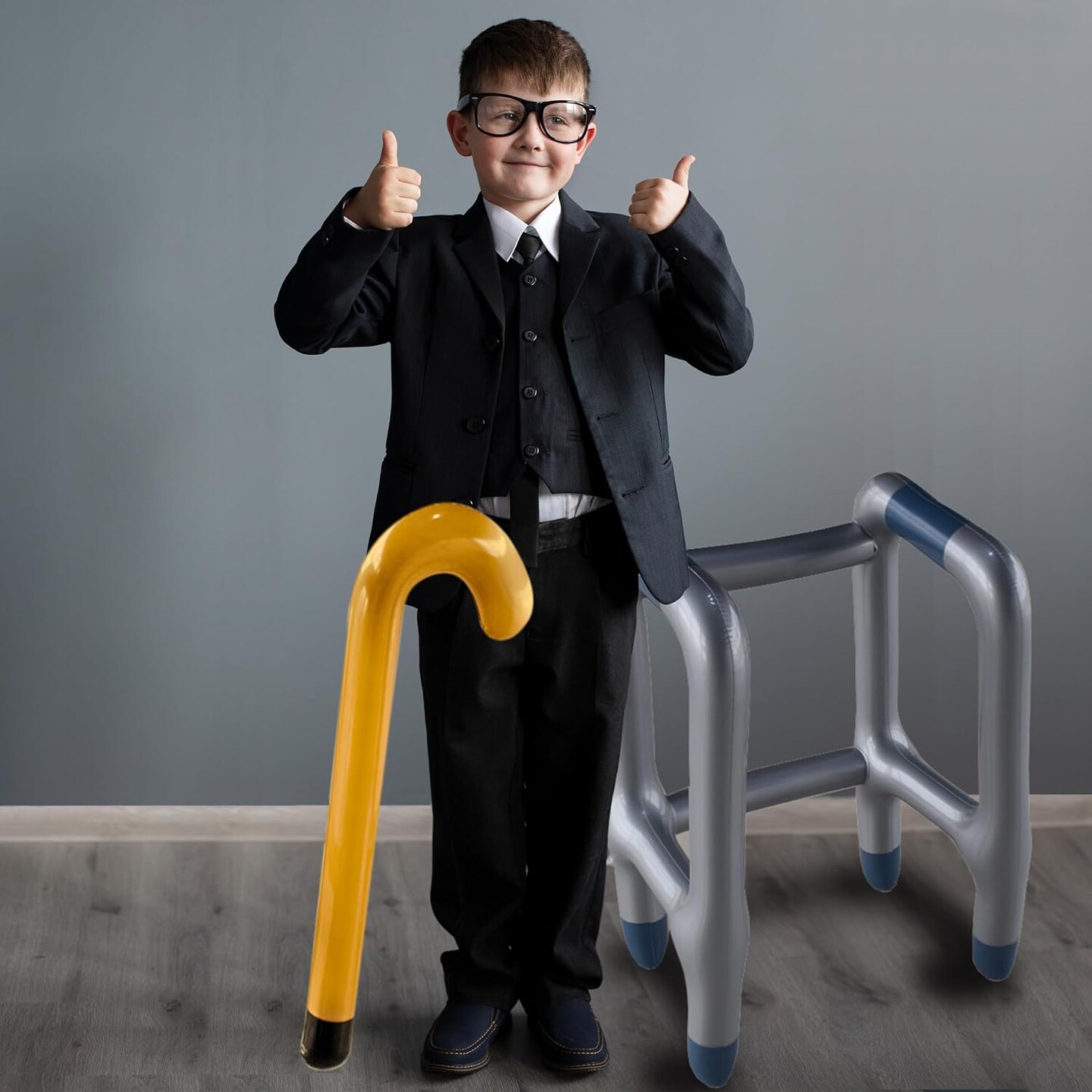 Inflatable Walker and Cane 2 Pcs Set for Kids & Adults – Old Man Old Lady Costume Accessories, 100 Days of School Outfit Props, Blow Up Walking Stick & Walker for Boys Girls