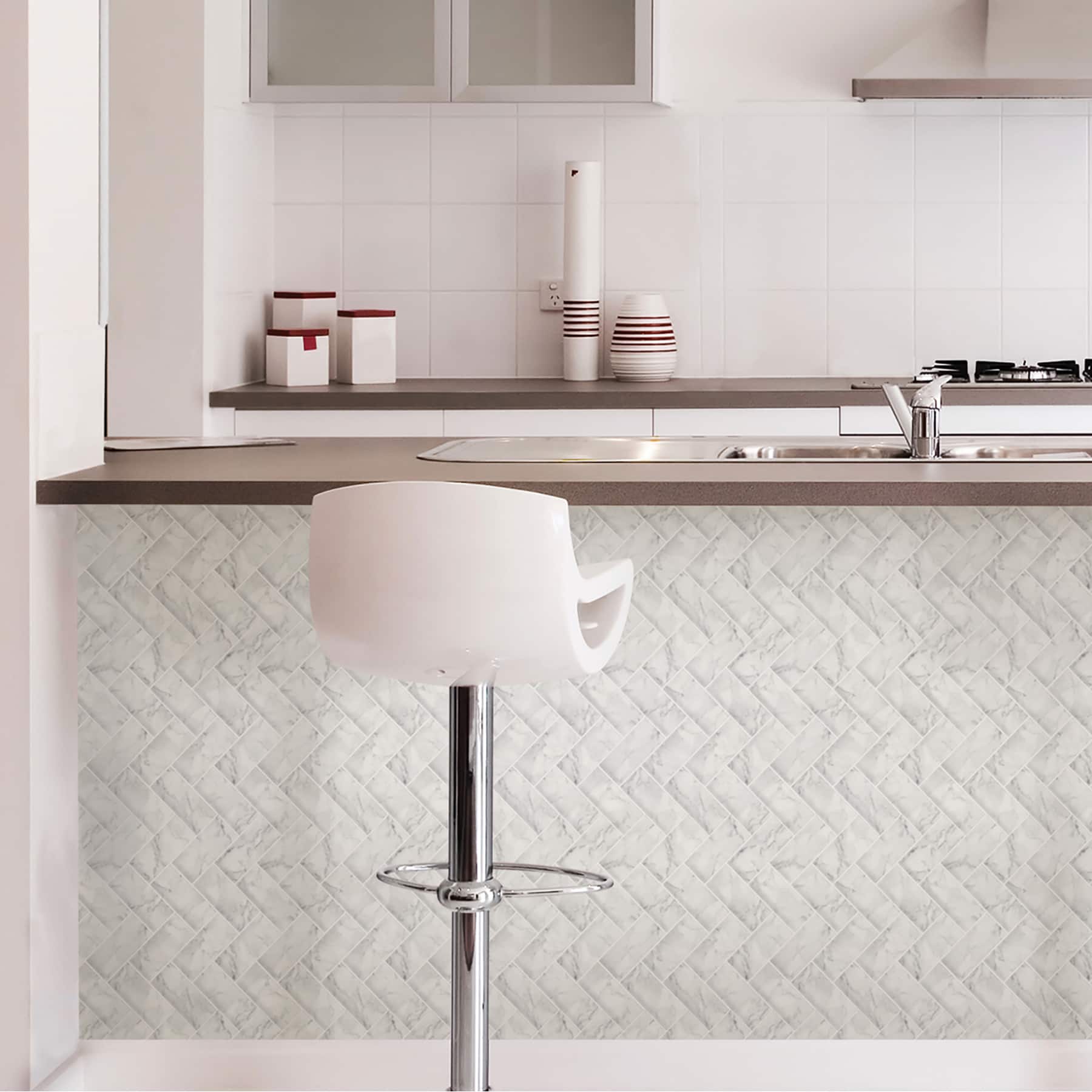 InHome Herringbone Carrara Peel & Stick Backsplash Tiles