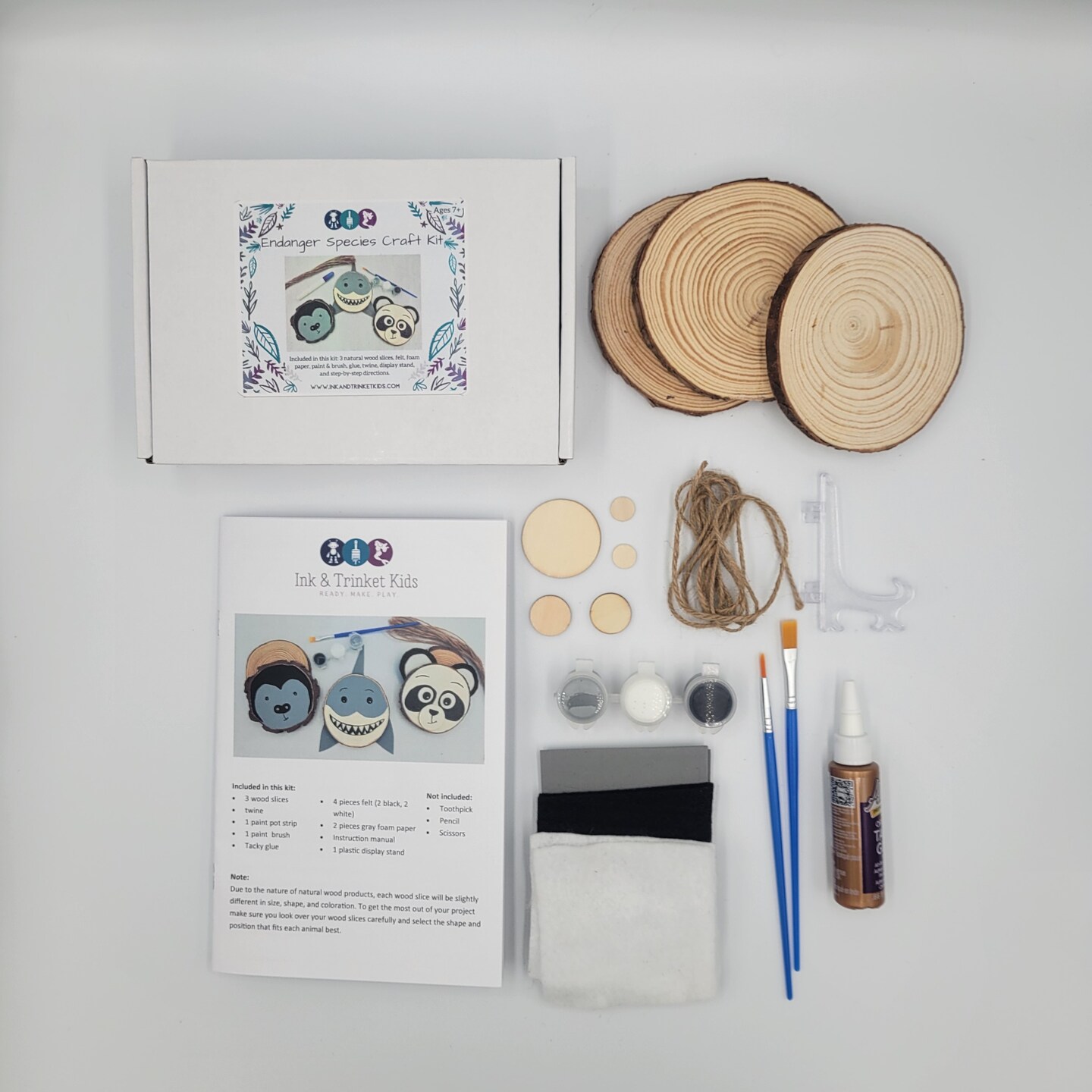 Ink and Trinket Kids Endangered Species Craft Kit, DIY Ornaments, Natural Wood