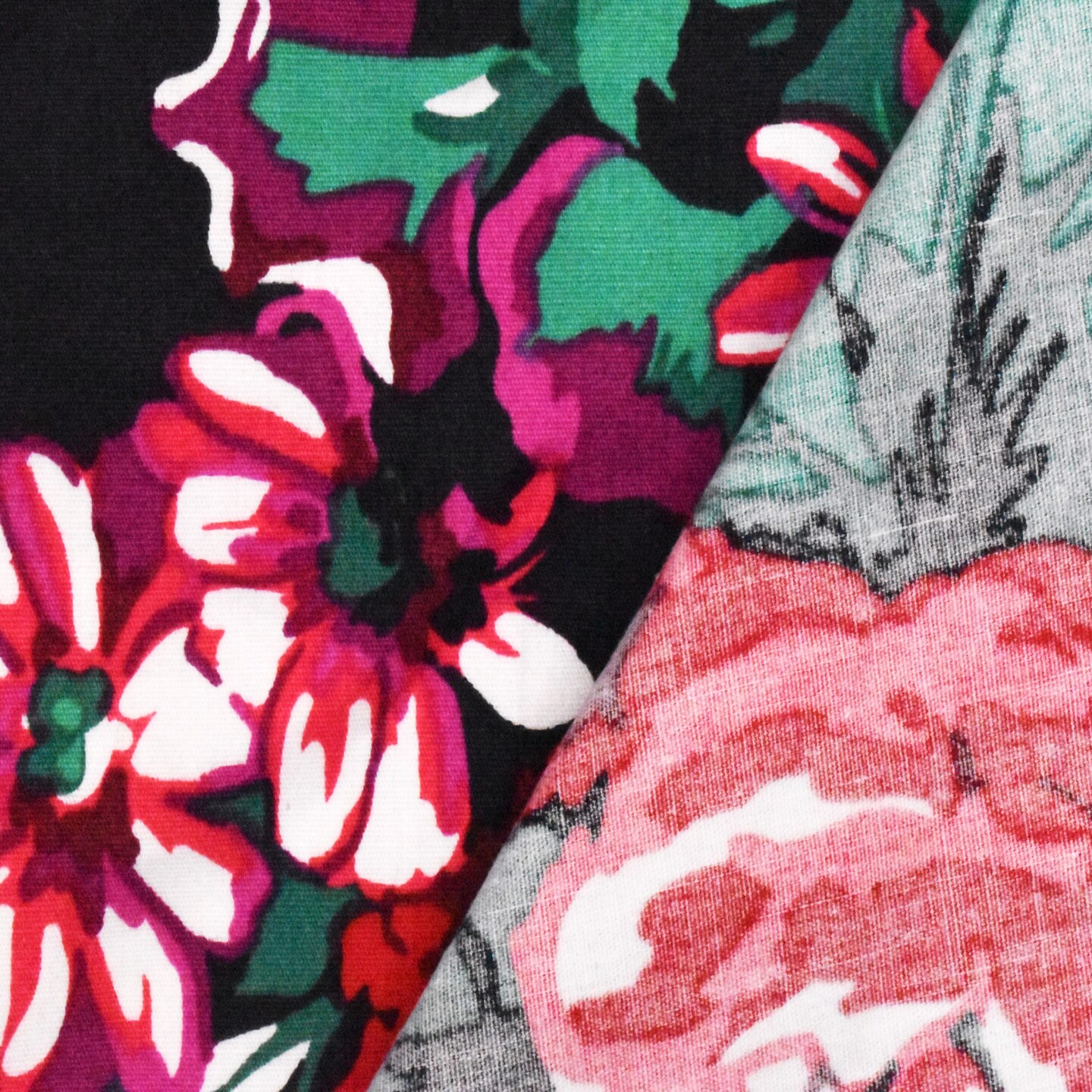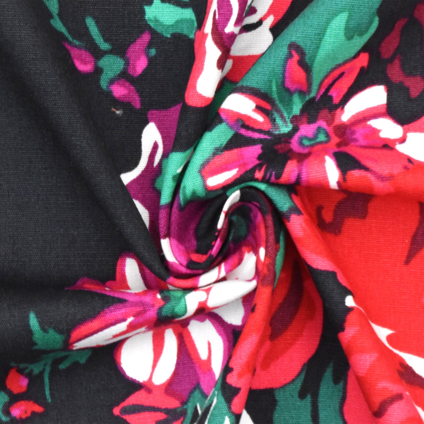 Ink Black-Red-Multi Floral Printed Stretch Broadcloth Woven Fabric By the Yard