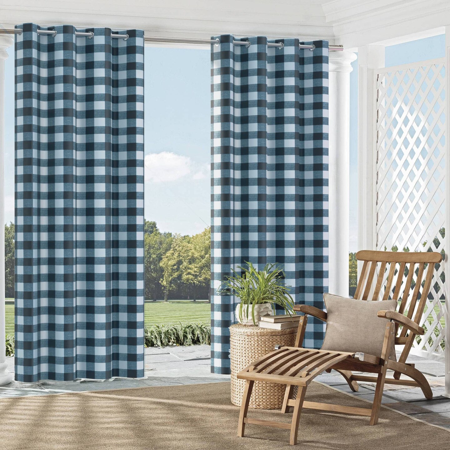 Ink - Blue Check & Houndstooth,Plaid Upholstery Fabric 54 Inches"