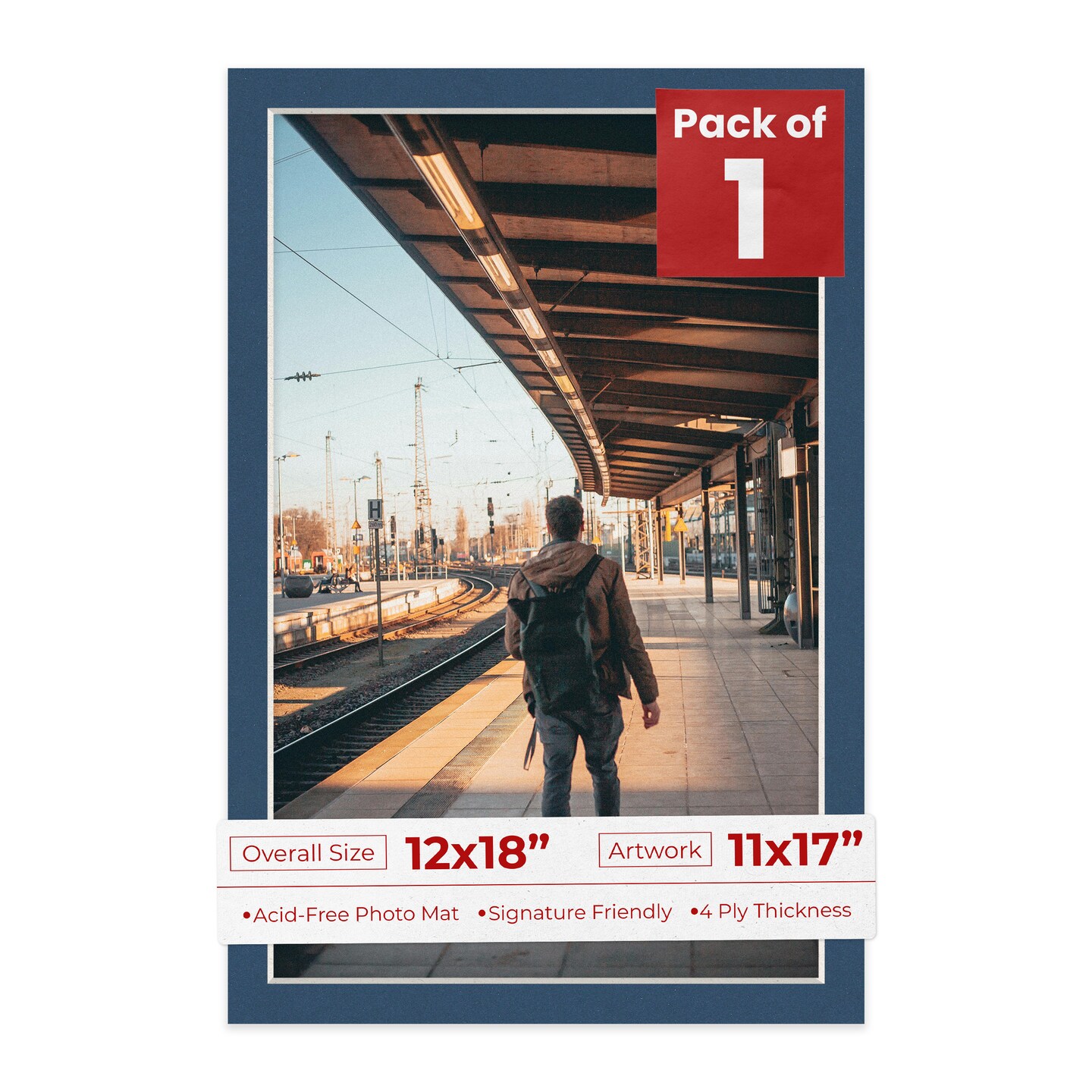 Ink Blue Mat Board for 12x18 Frames - Fits 11x17 Photos