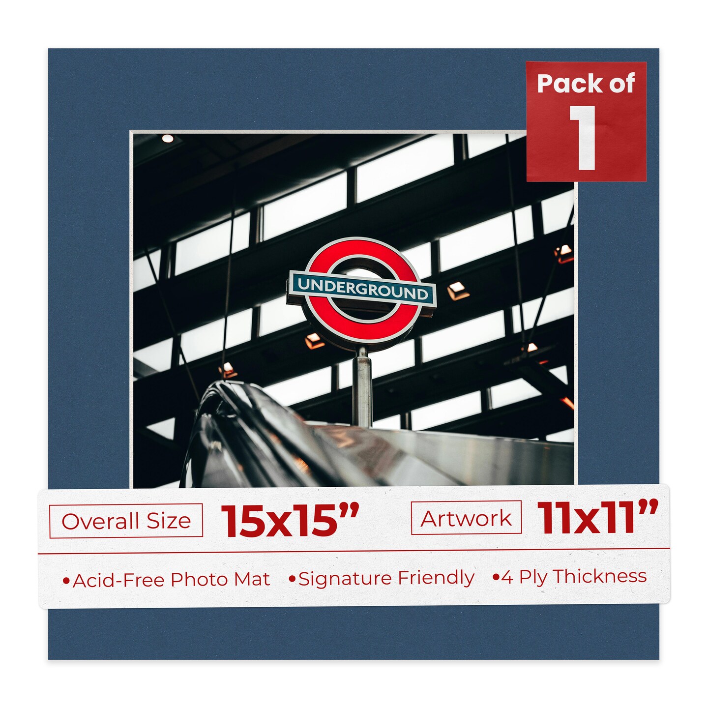 Ink Blue Mat Board for 15x15 Frames - Fits 11x11 Photos