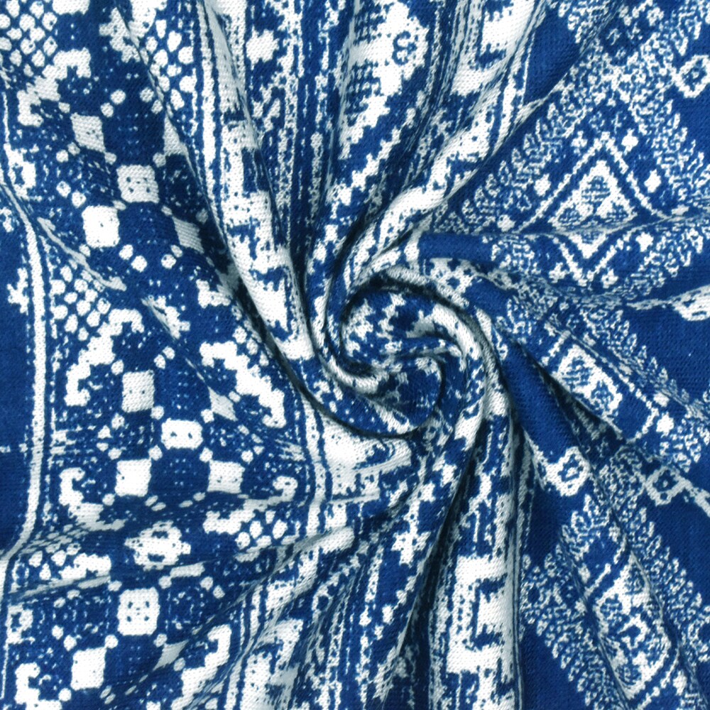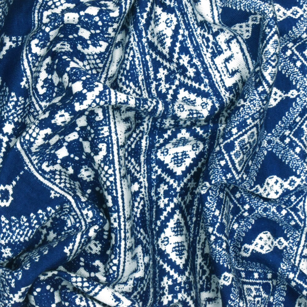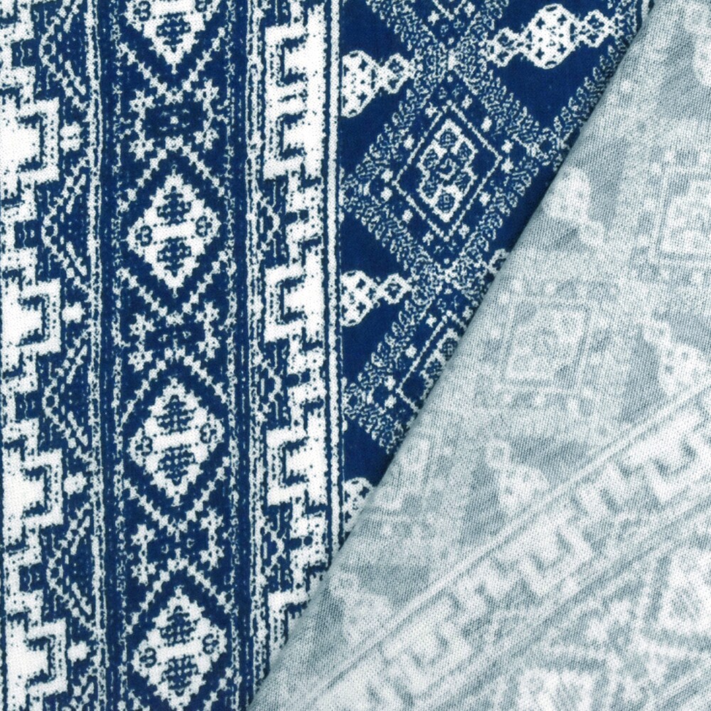 Ink Blue-White Aztec Printed Stretch Rayon Jersey Knit Fabric By the Yard