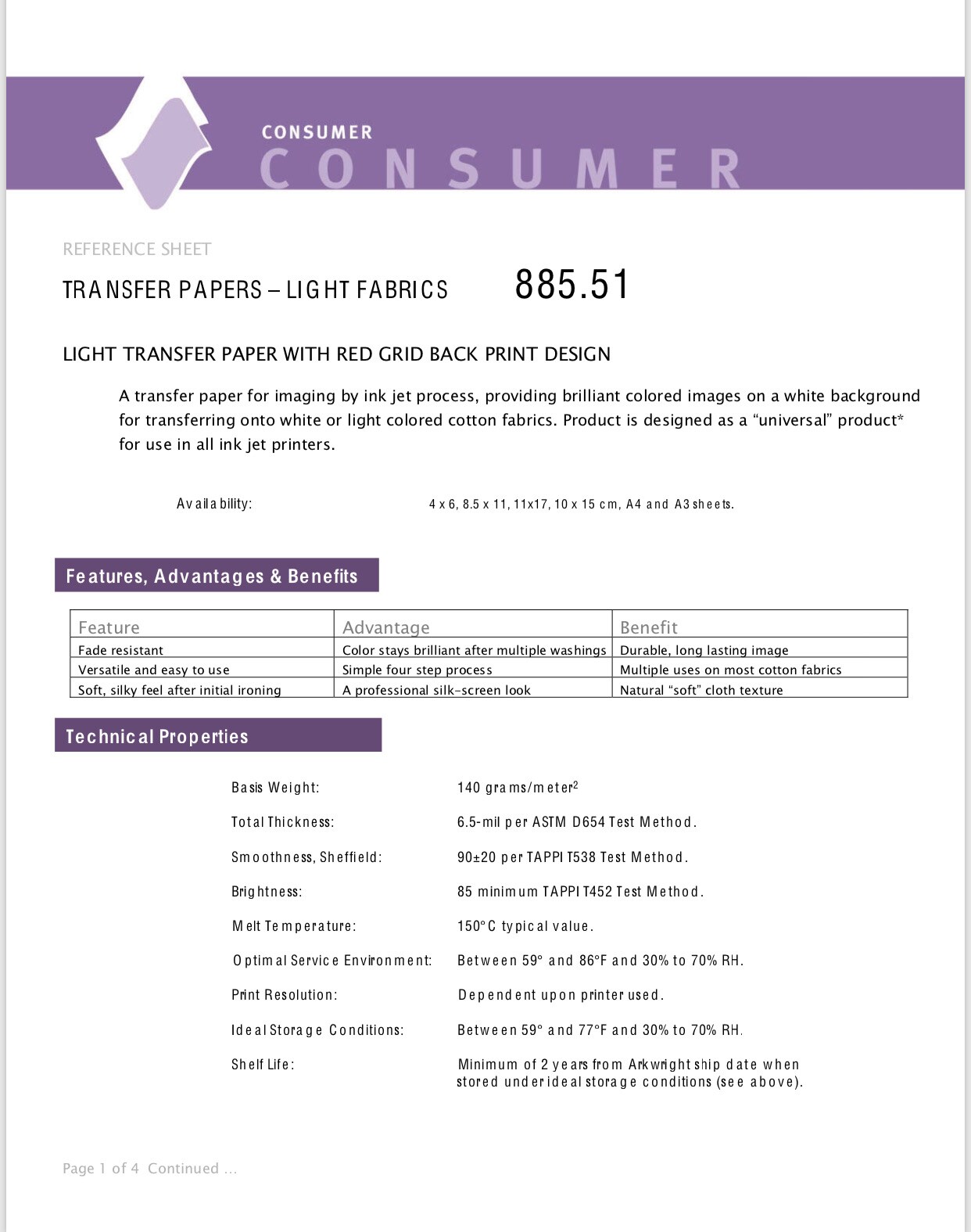 Ink Jet HEAT TRANSFER PAPER RED GRID for Light T-Shirts 50 Sh 8.5"X11"