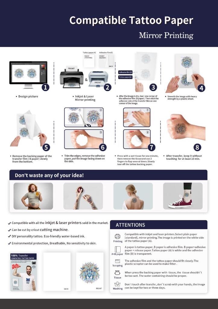 INKJET Temporary Tattoo Tatoo GLOW in the Dark GREEN Decal Paper 8.5”x11” 20 Sh